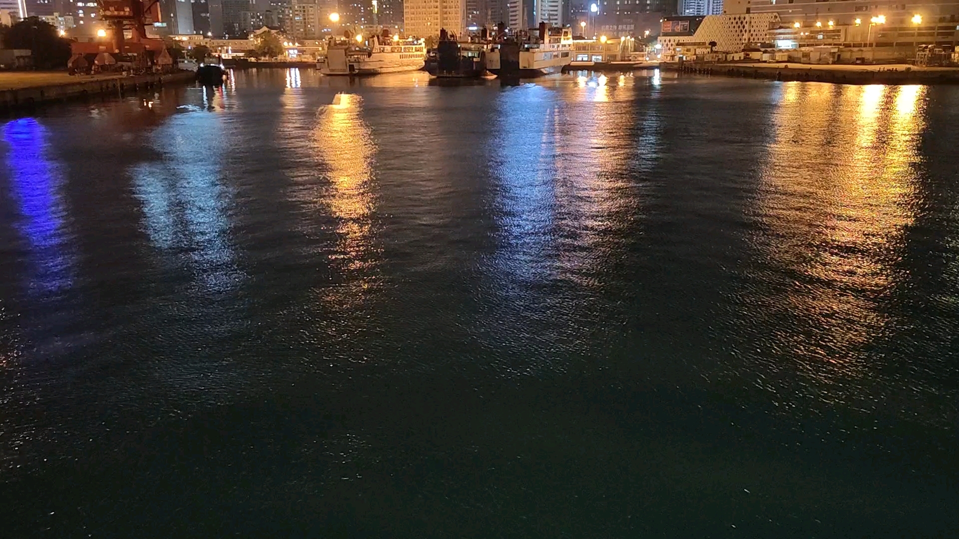 【素材】港口停泊 夜晚 灯光 海面