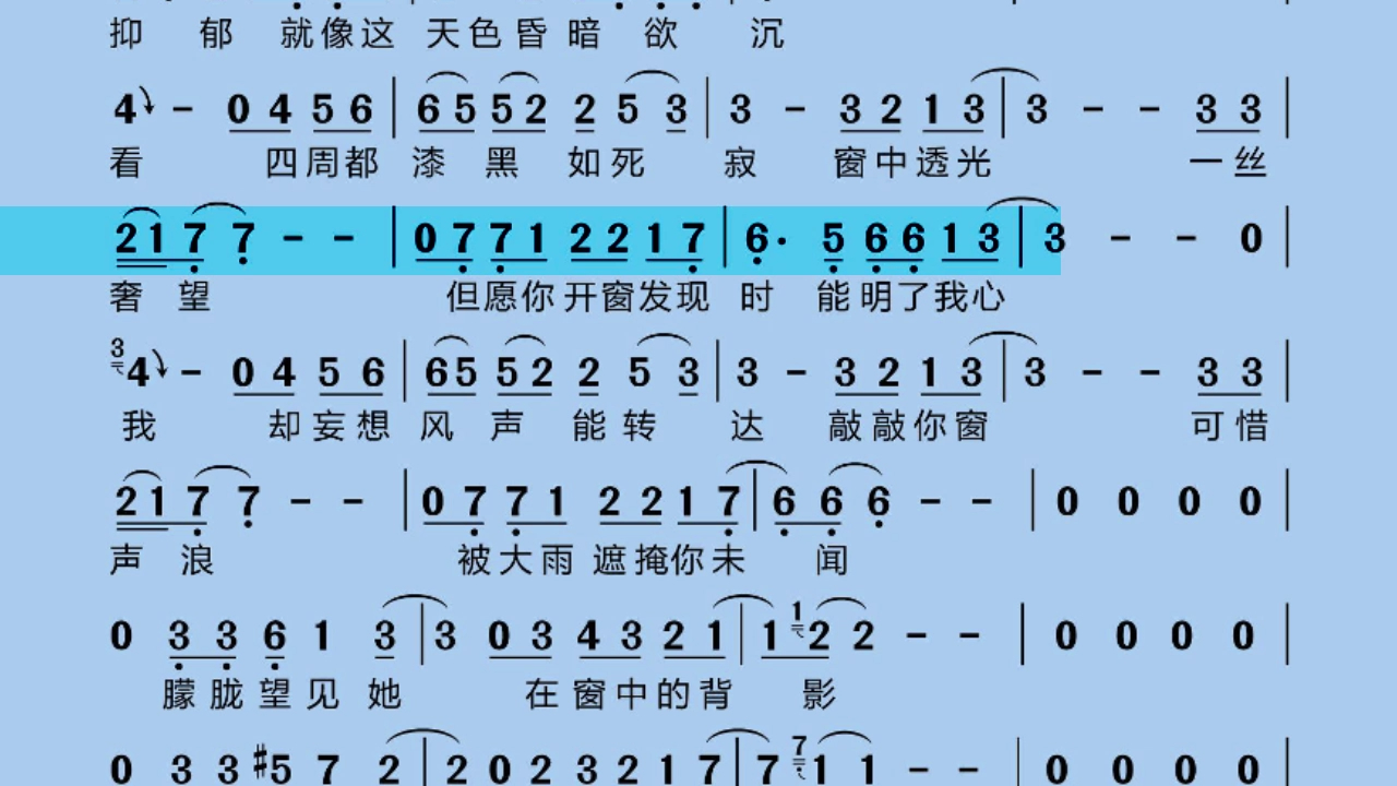 ShowBL > 谭咏麟 - 雨丝情愁#伴奏#简谱#动态简谱有声伴奏#港台经典