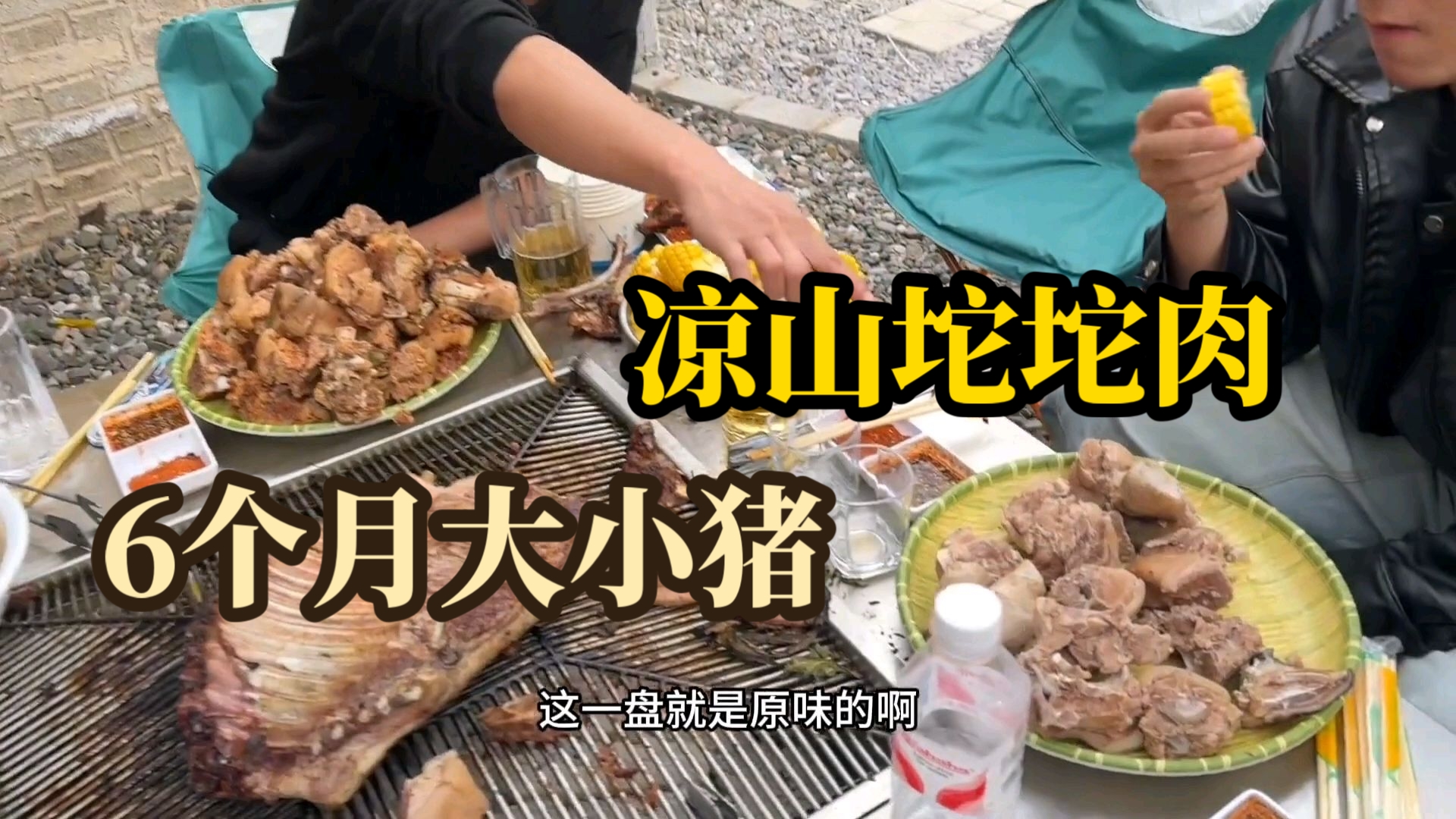 彝族坨坨肉制作过程,几个月大的小黑猪难逃毒手,猪腰子不处理直接烤着吃?