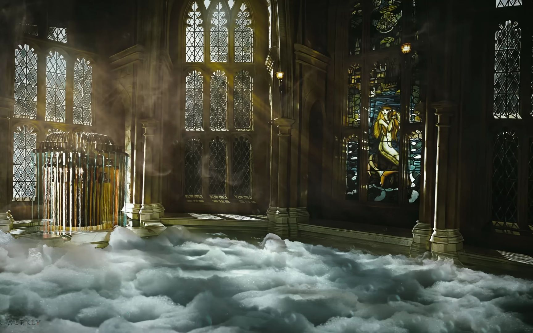 youtube:n0ychtiT67M在古堡中沐浴 阳光透光高挑的窗户射进浴室 梦境般的场景 当然免不了桃金娘的骚扰咯
