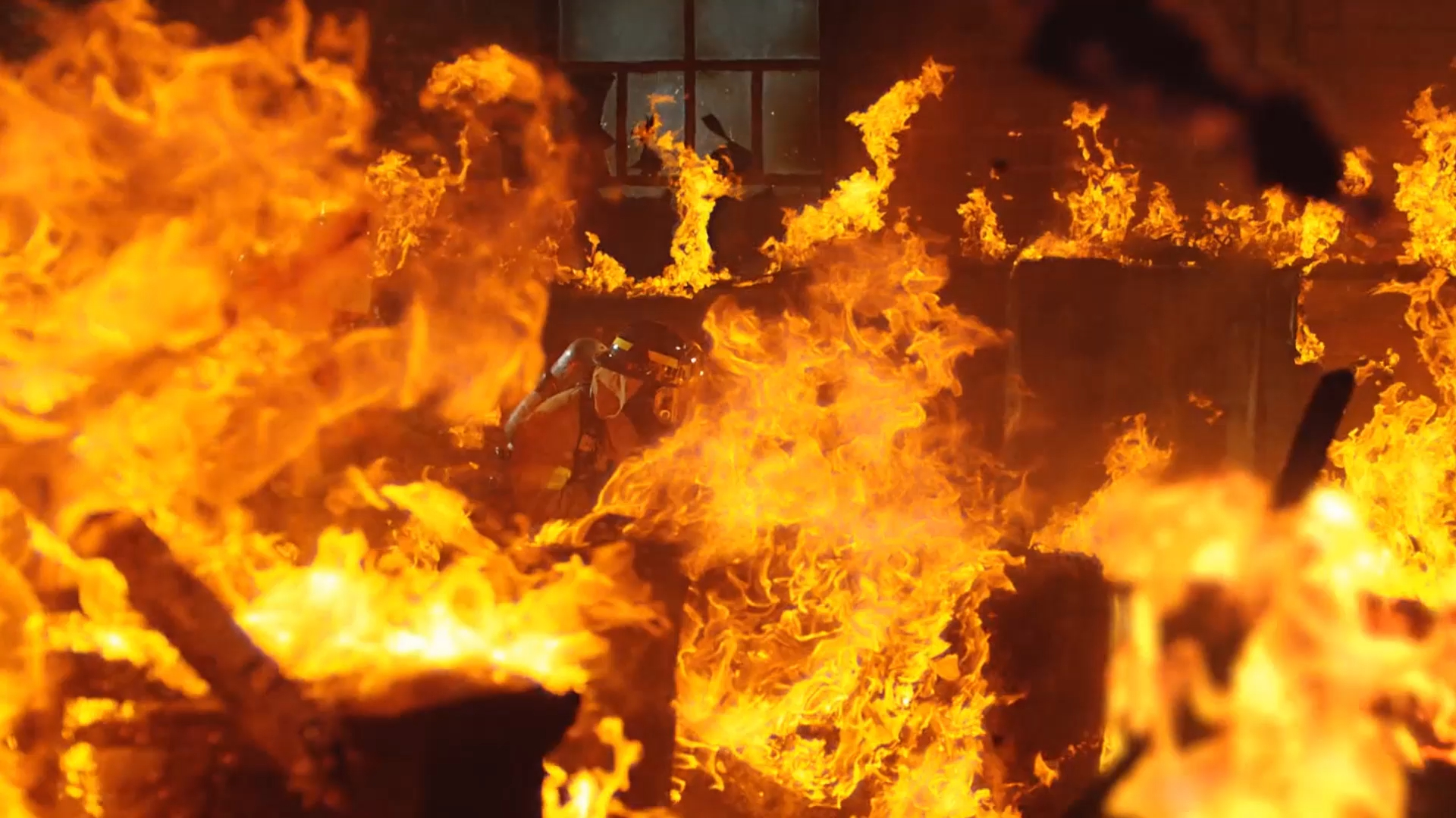 无人机航拍消防员救火