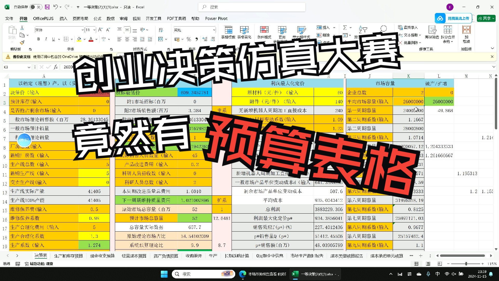 创业决策仿真大赛 创业管理与创业模拟实践 表格使用方法