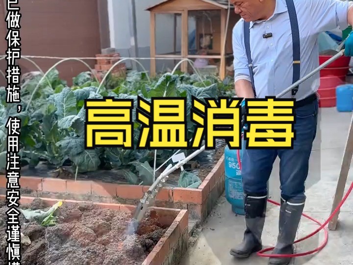 高温土壤消毒! 家庭菜园种植,利用火焰的高温给土壤进行消毒,为开春的种植做准备