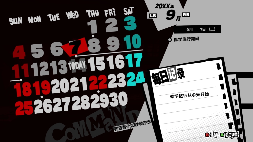 【P5R】少玩五块钱之修学旅行的日历