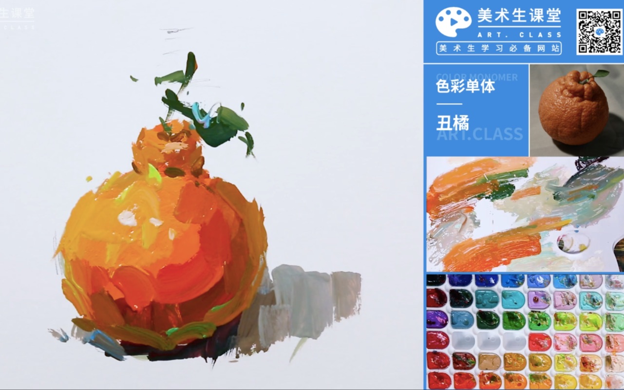 色彩静物入门教程-色彩单体-丑橘讲解示范。
