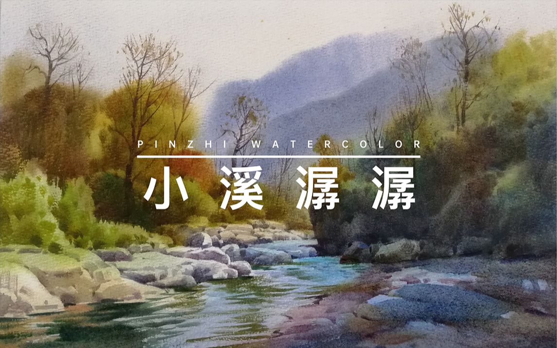 非常美的山中小景 水彩风景教程 小溪潺潺 带语音解说和字幕