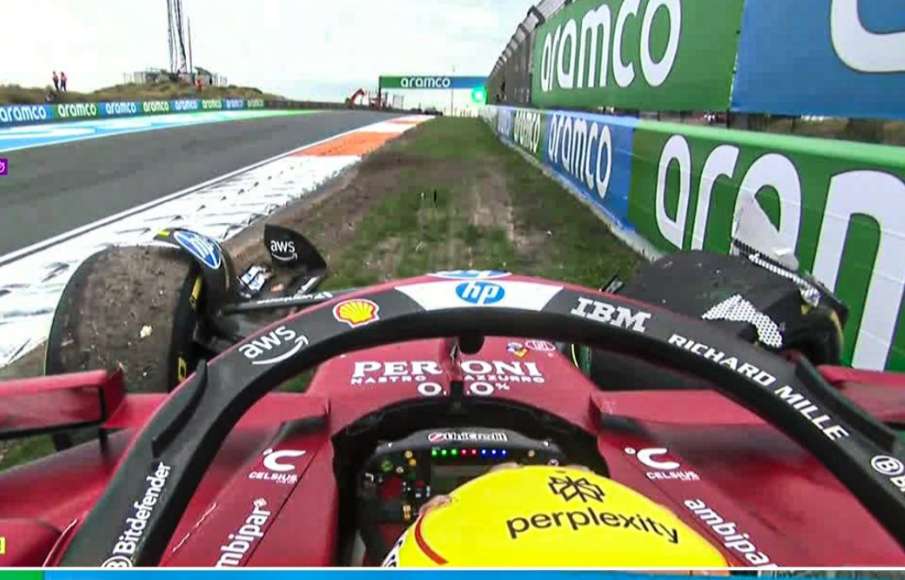 汉密尔顿三号弯失误后轮失控上墙(荷兰站)
