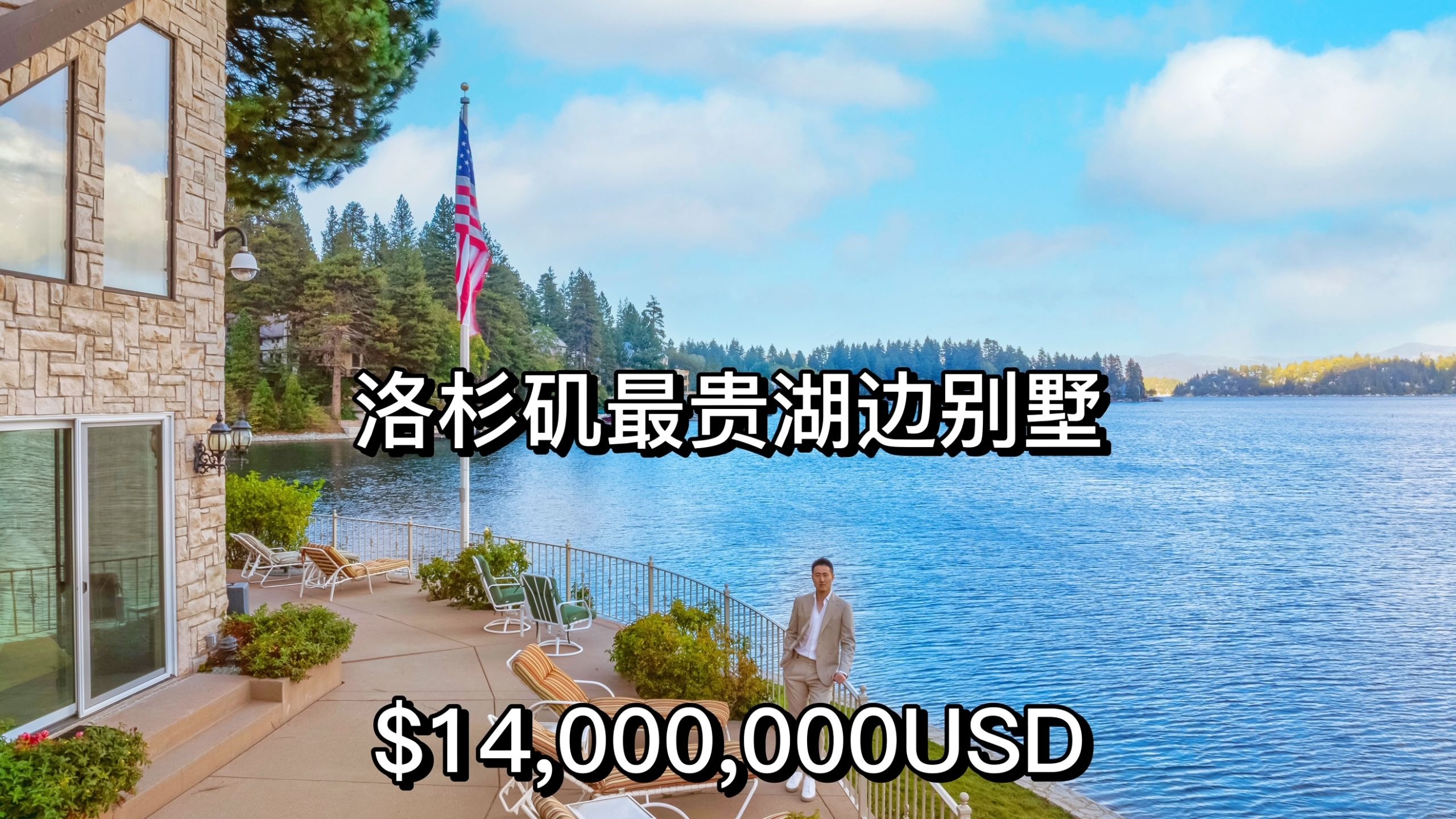 $1400万美金 开箱 美国总统级别湖畔别墅 270度环水半岛 洛杉矶地区最昂贵的湖畔别墅!