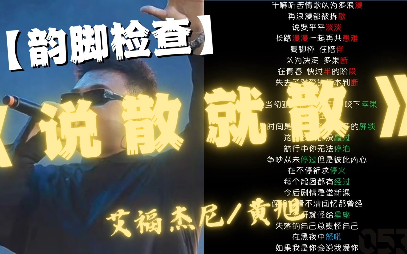 【韵脚检查】 艾福杰尼/黄旭『说散就散』|Lyrics Video|“长大的过程中会有雷雨暴风 那就珍惜每一秒每当你在我怀中”
