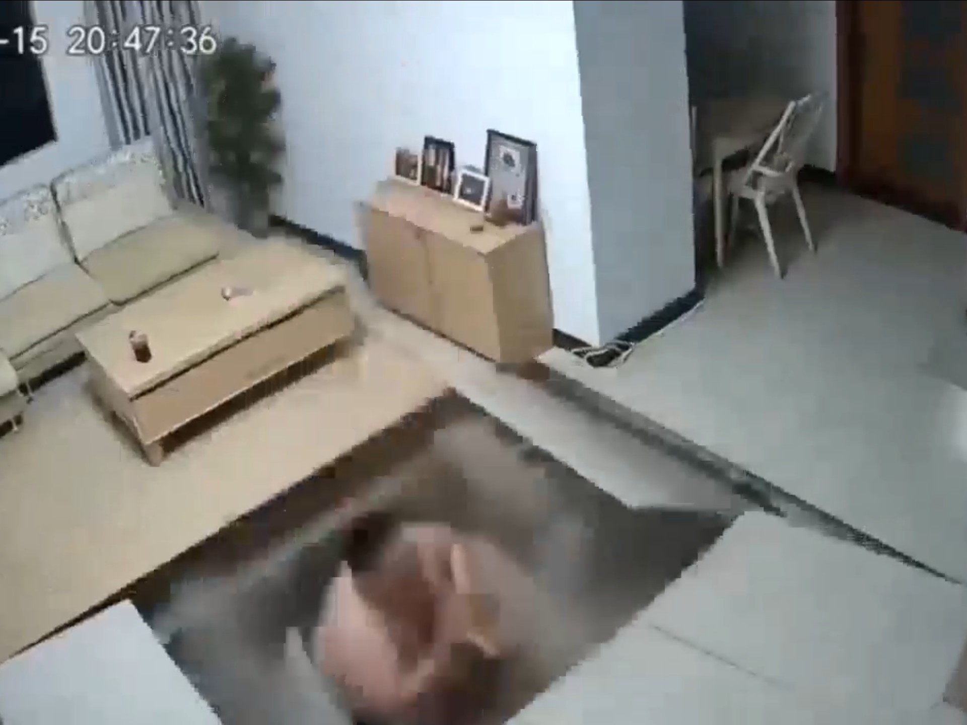 超重男子锻炼,把楼板踩塌!
