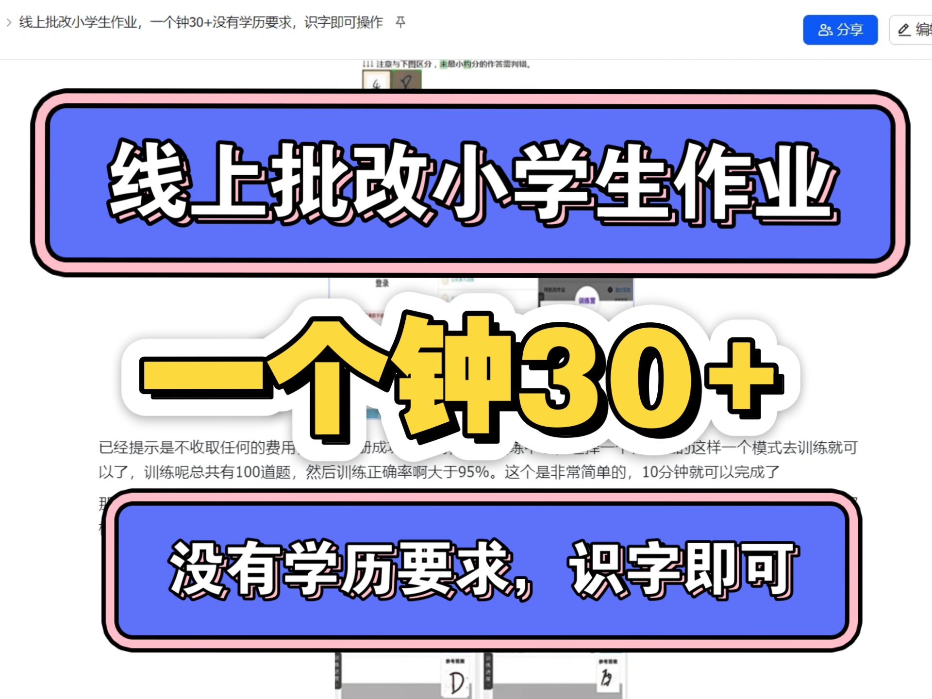 线上批改作业,没有门槛,一个钟30+《视频最后附赠教程》