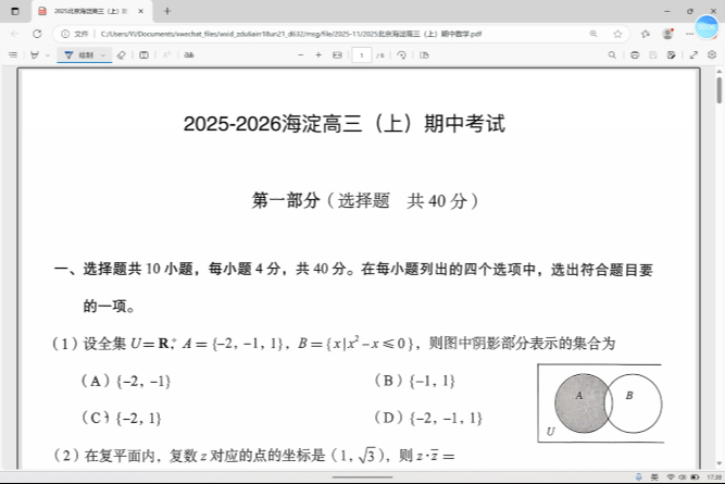 2026海淀高三期中数学考试 逐题讲解