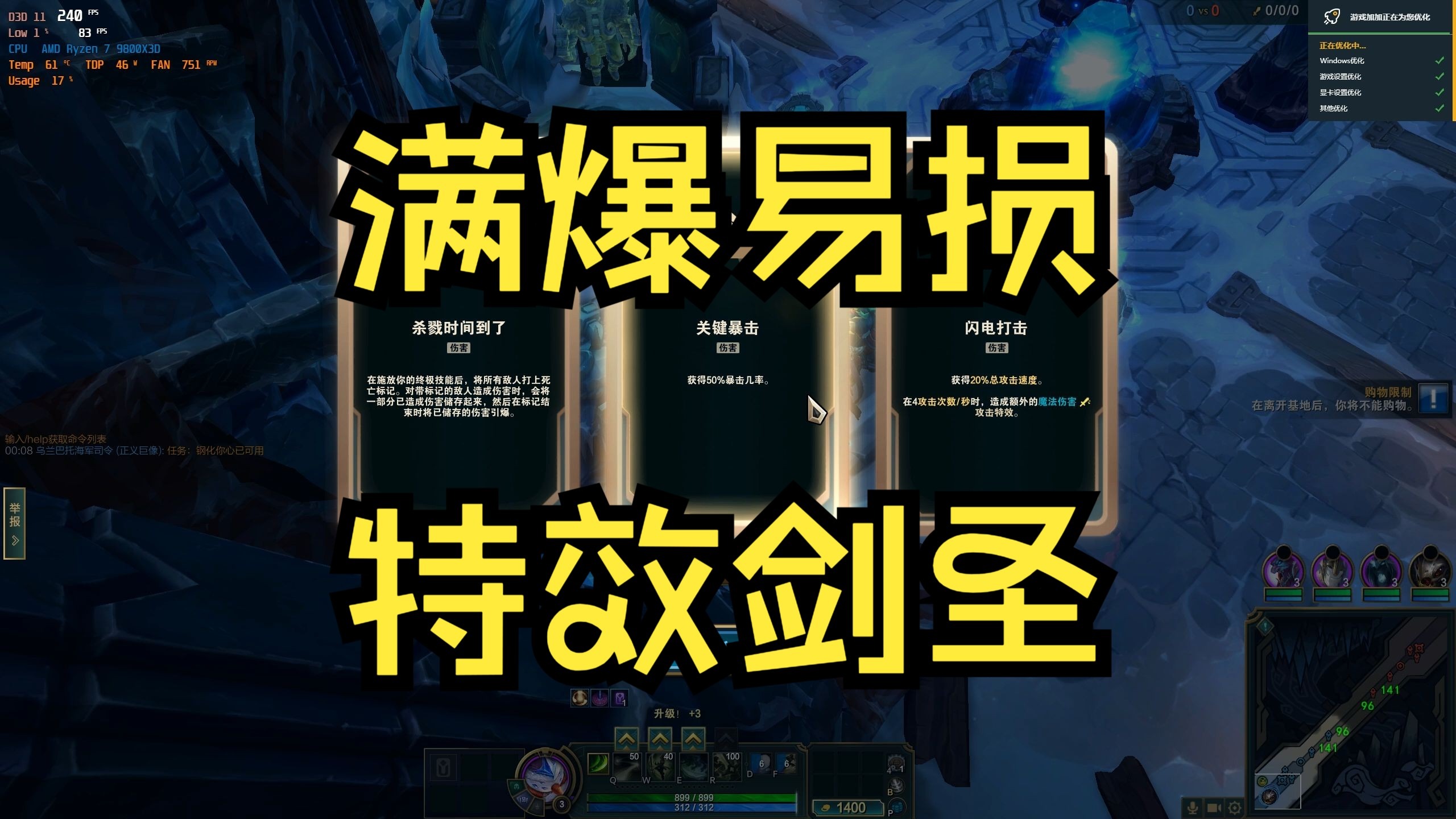 海克斯大乱斗剑圣,关键暴击+易损,配个收集者直接满爆中期砍谁都是秒(31杀+五杀)