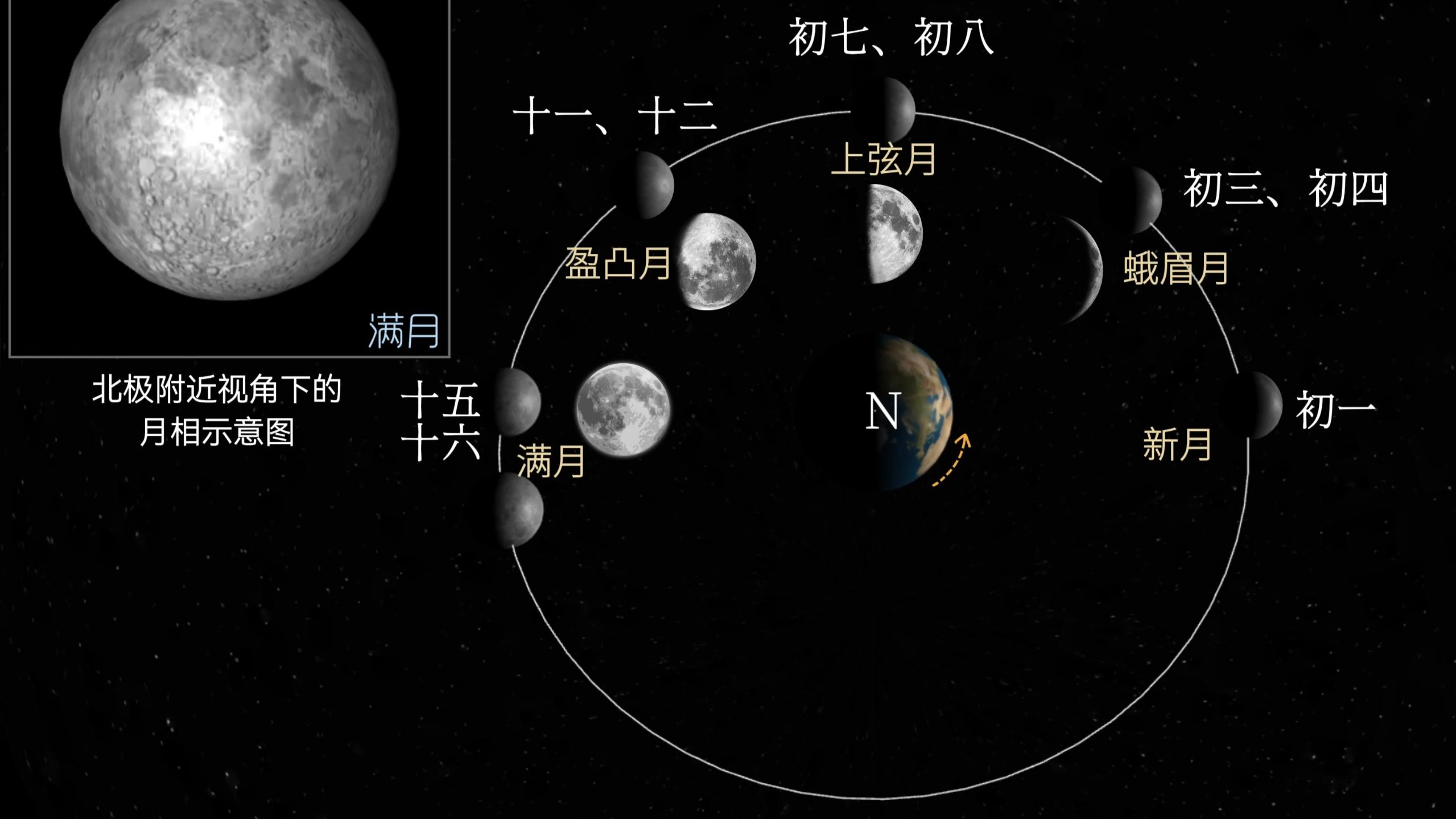 动画演示来自网站:https://www.earthspacelab.com/app/moon-phases/zh