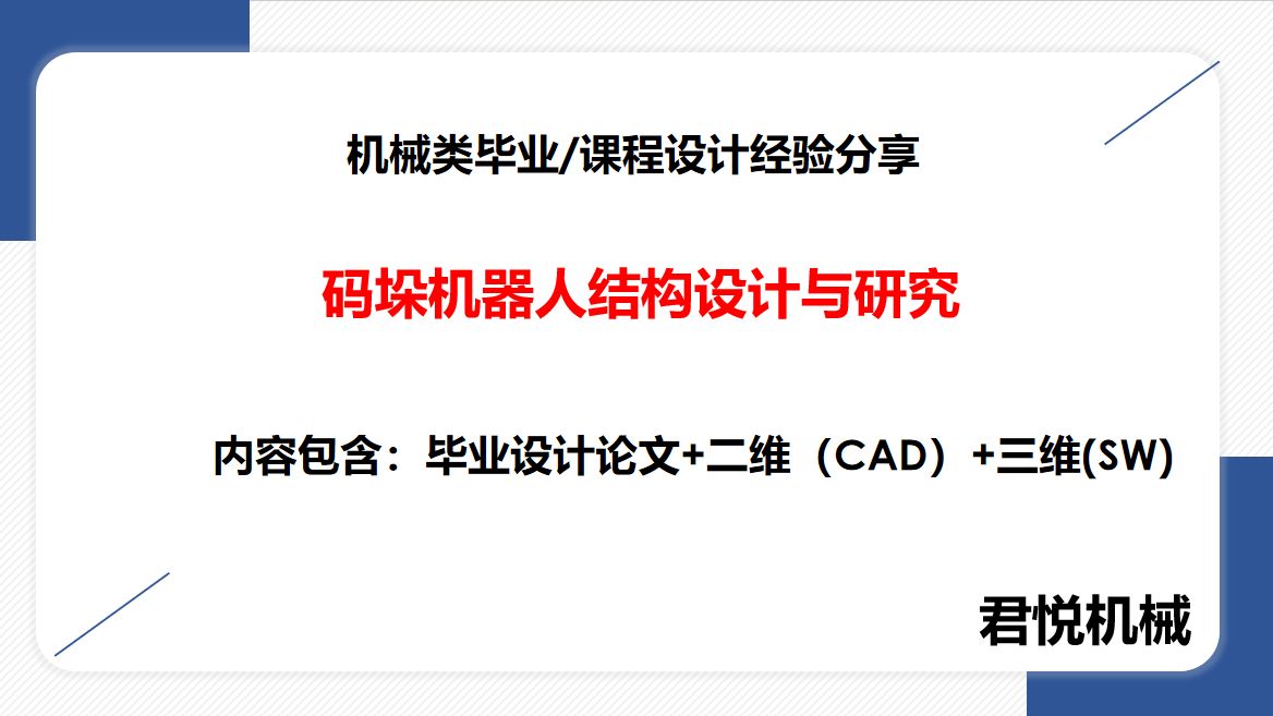 君悦机械的视频 04:本科机械类毕业设计分享:垃圾分选装置的结构设计 07:本科机械类毕业设计分享:CA6140车床主轴机械加工工艺规程 与铣键槽夹具设计 14:本科机械类毕业设计分享:码垛机器人结构设计与研究 15:本科机械类毕业设计分享:全自动圆瓶贴标机的设计与研究 12:本科机械类毕业设计分享:货车传动系统驱动桥的设计 11:本科机械类毕业设计分享:甘蔗自动剥皮切断机的设计 06:本科机械类毕业设计分享:扫地机器设计