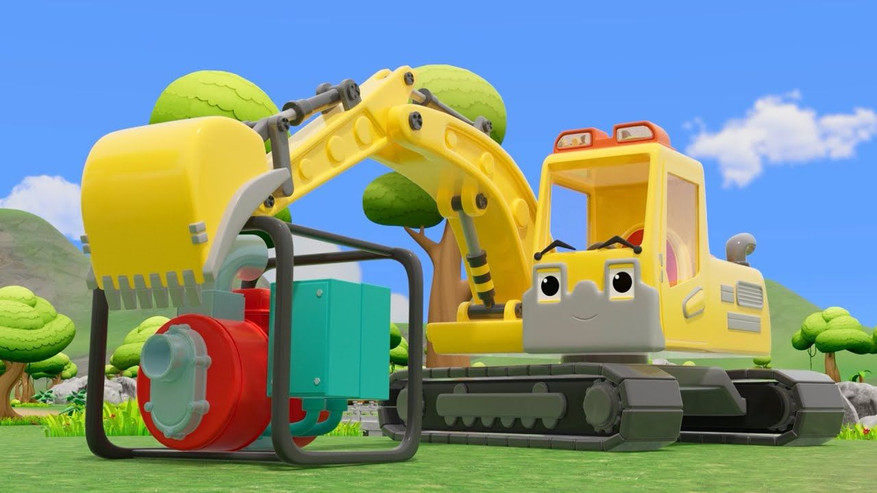 ShowBL > 挖掘机拿来抽水机,准备抽水作业,儿童早教益智动画