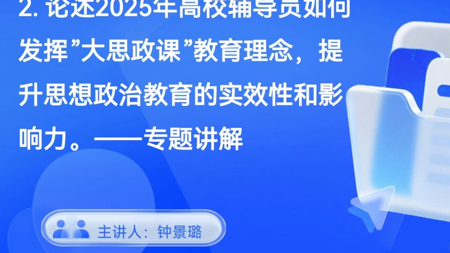 2. 论述2025年高校辅导员如何发挥”大思政课”教育理念,提升思想政治教育的实效性和影响力。——专题讲解