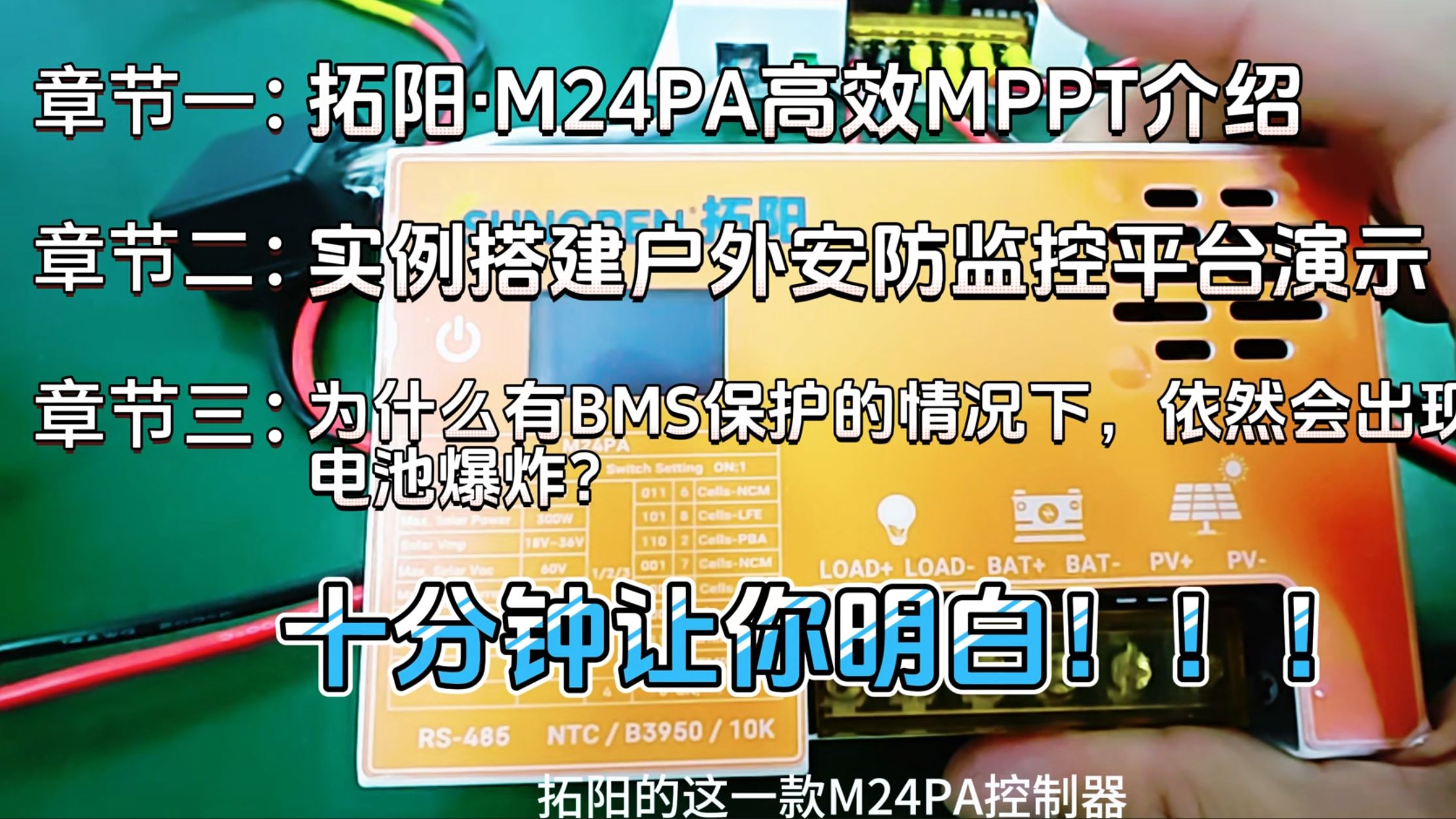 拓阳高效MPPT光伏控制器M24PA小功率300W,追踪99.9%产品演示+锂电池充电爆炸科普!不好的充电器就是有BMS也没有用!所有人都应该看些为什么!!!