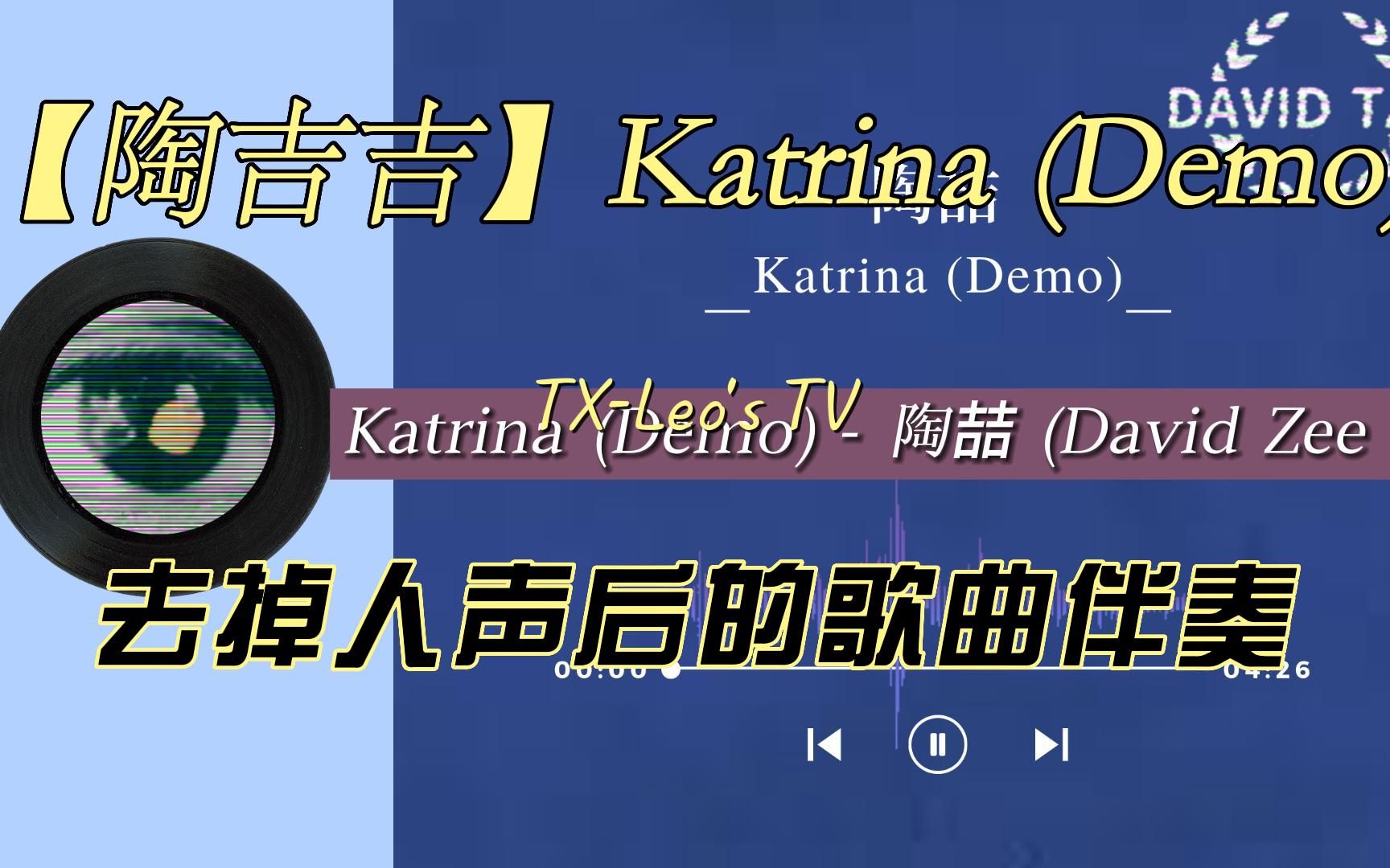 TX_Leo的视频 【陶喆-Katrina (Demo)伴奏】去掉人声后的歌曲伴奏 【陶喆-飞机场的10:30无损原声】 【陶喆-Dear God伴奏】去掉人声后的歌曲伴奏 【陶喆-讨厌红楼梦人声】去掉伴奏后的清唱人声 【丁世光-一口/The Day You Left Me人声】去掉伴奏后的清唱人声