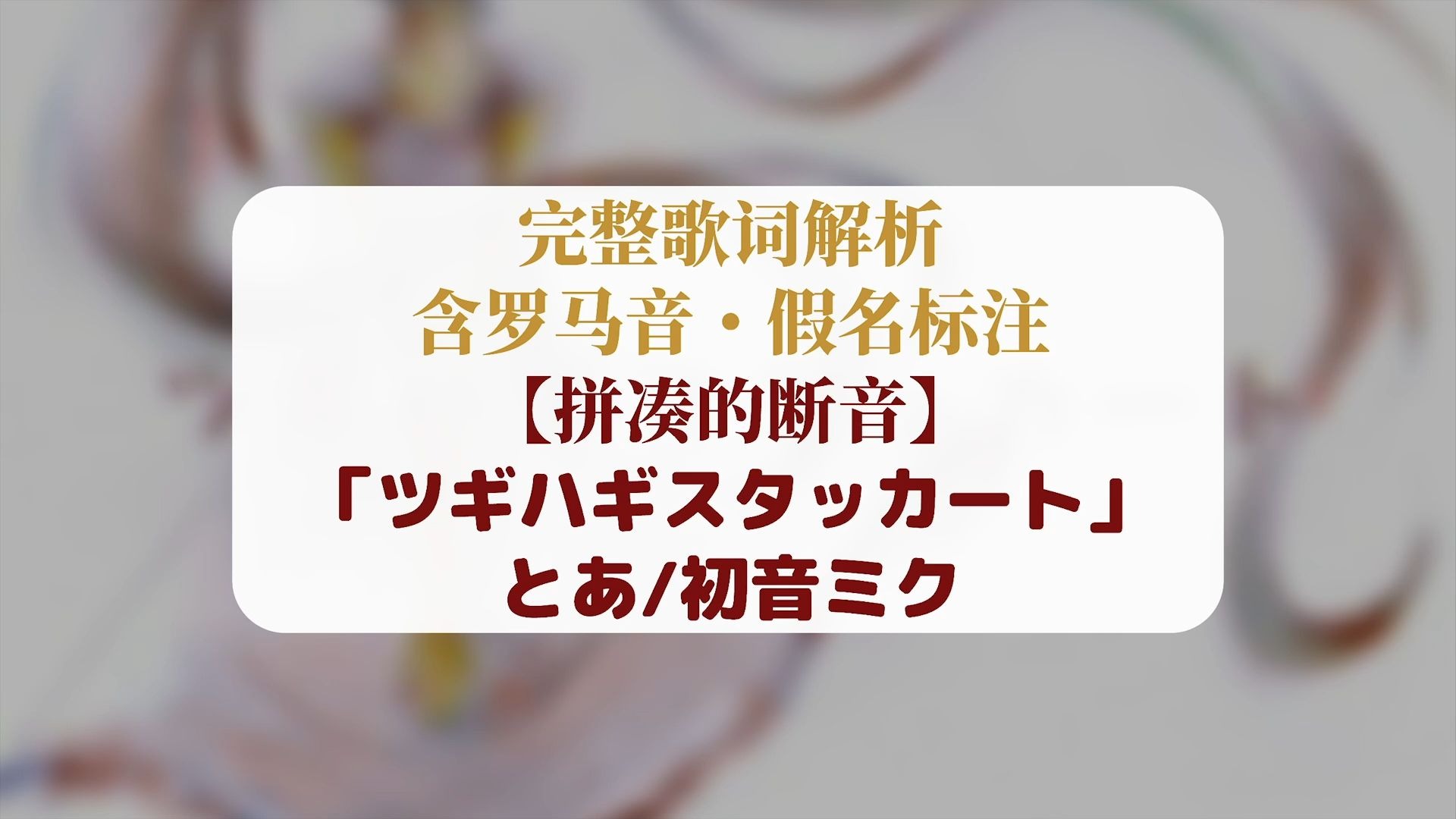 『拼凑的断音/ツギハギスタッカート』とあ/初音ミク标注了平假名和罗马音学唱和学单词都可使用^ ^感谢各位的支持和建议~...