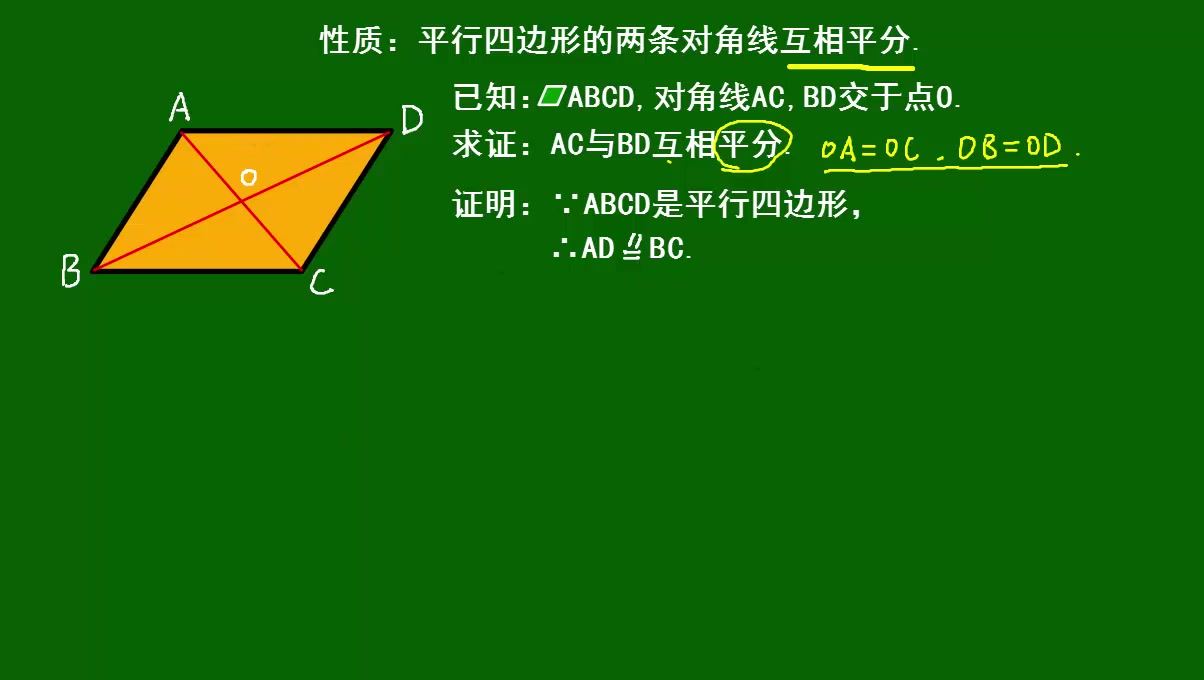 53几何原本补充内容(平行四边形的性质:对角线互相平分)