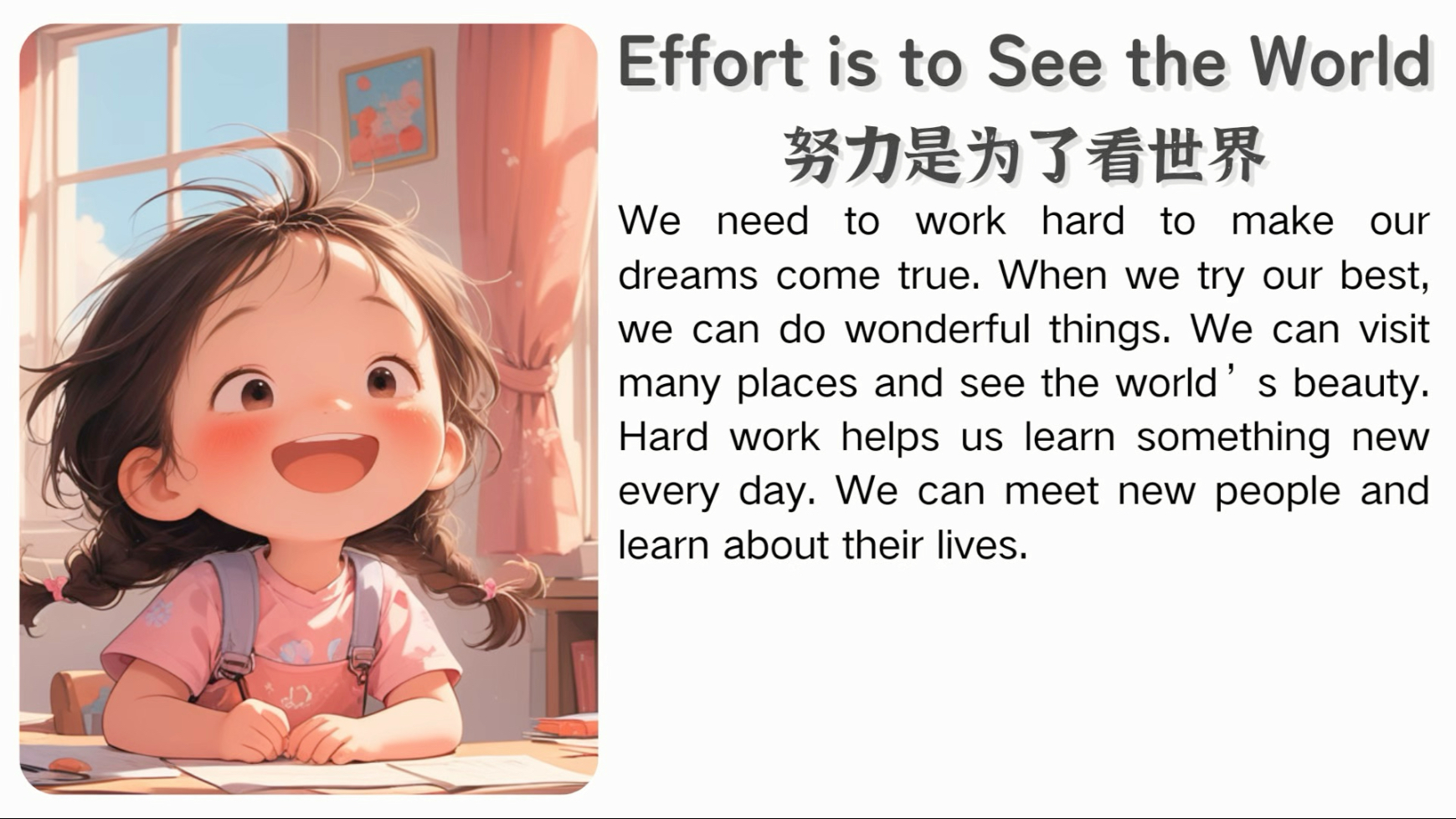 ShowBL > 📚小学新课标英语短文听读|努力是为了看世界