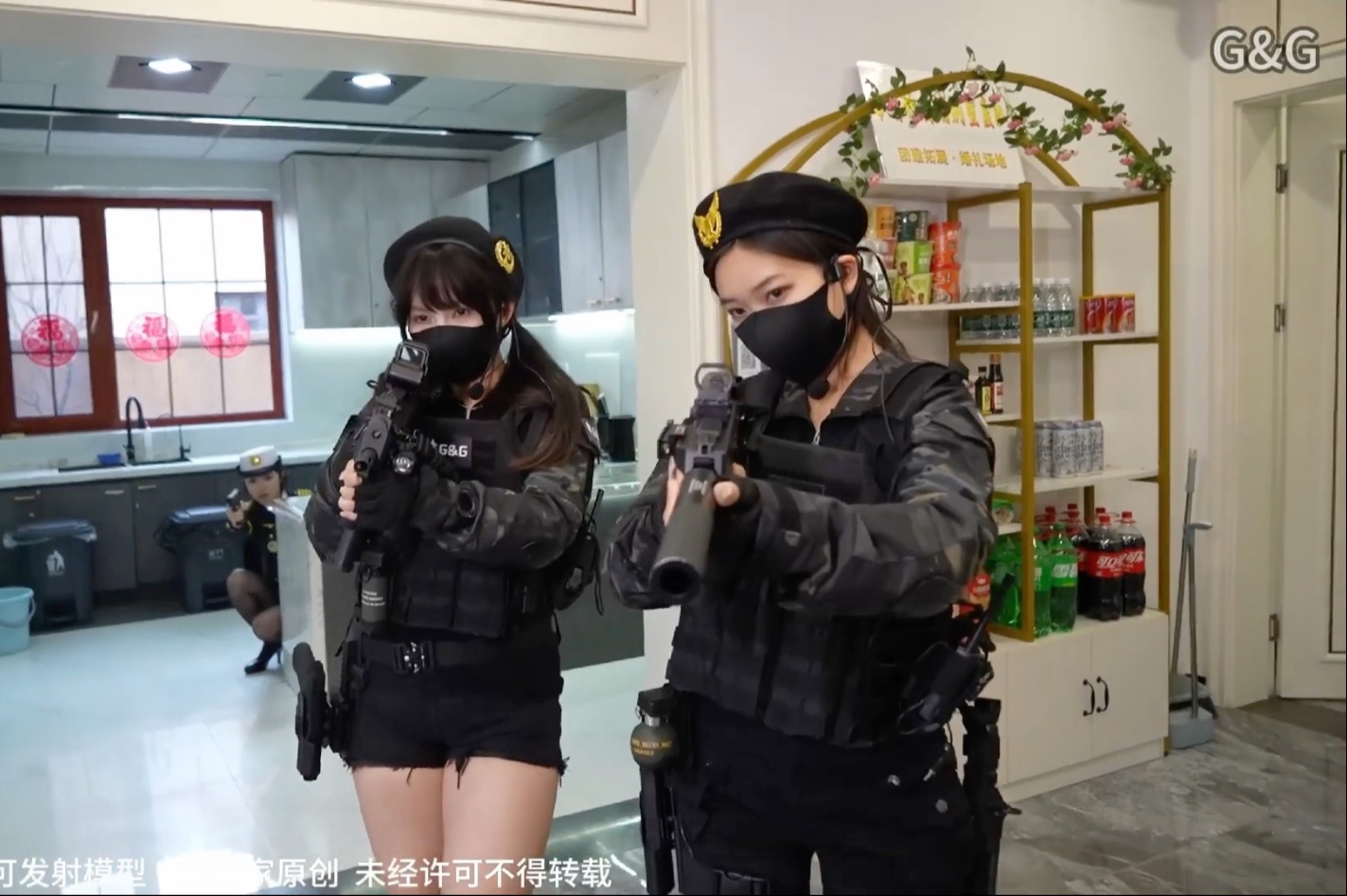 Sexy and cute female superhero is besieged by alien warriors