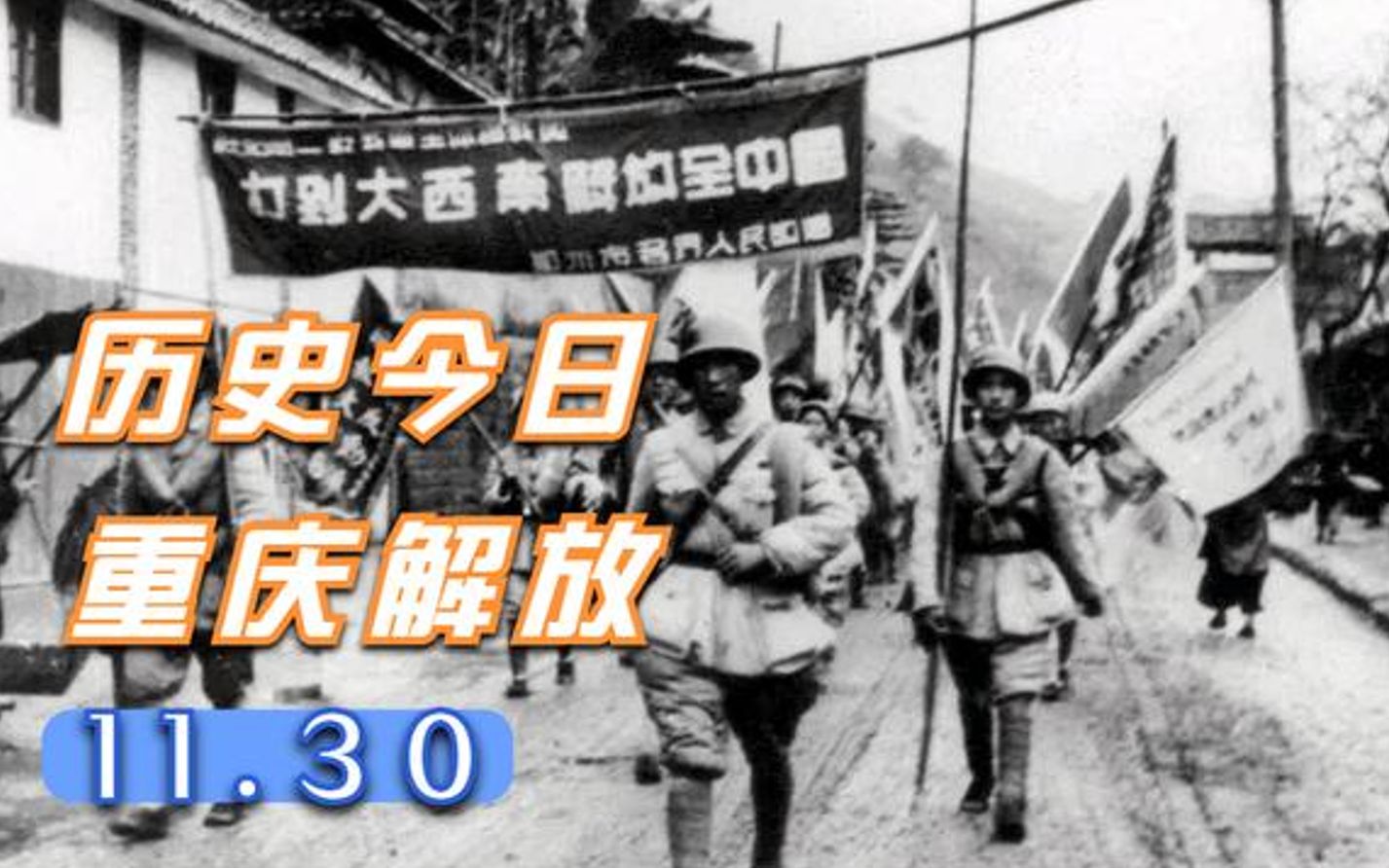 解放军于 1949 年 11 月 30 日占领昔日陪都,国共内战胜负已定,重庆人民表现出欢魏鼓舞的情绪,举着“打到大西南,解放全中国”的旗帜在全城游行。...