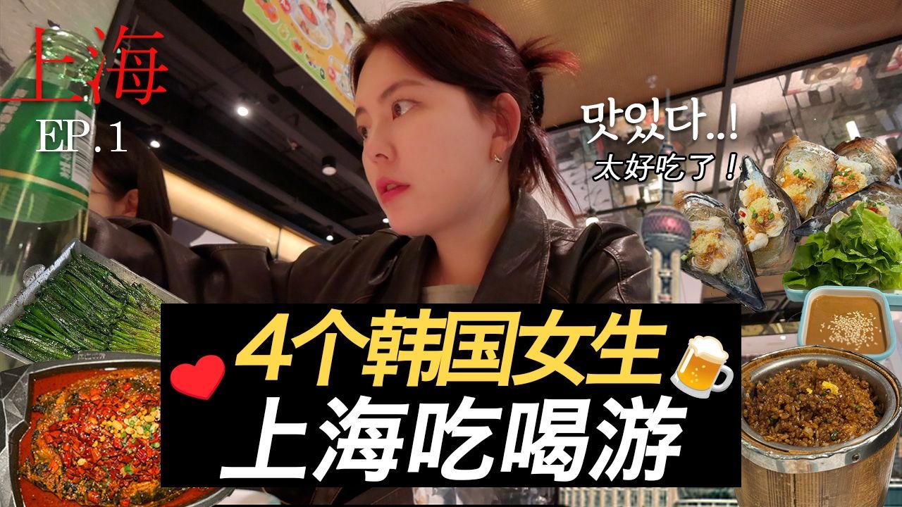 4个韩国女生的上海麻辣之旅|南京东路狂逛一天|烤鱼+羊肉串+深夜小酒馆一路喝到嗨!
