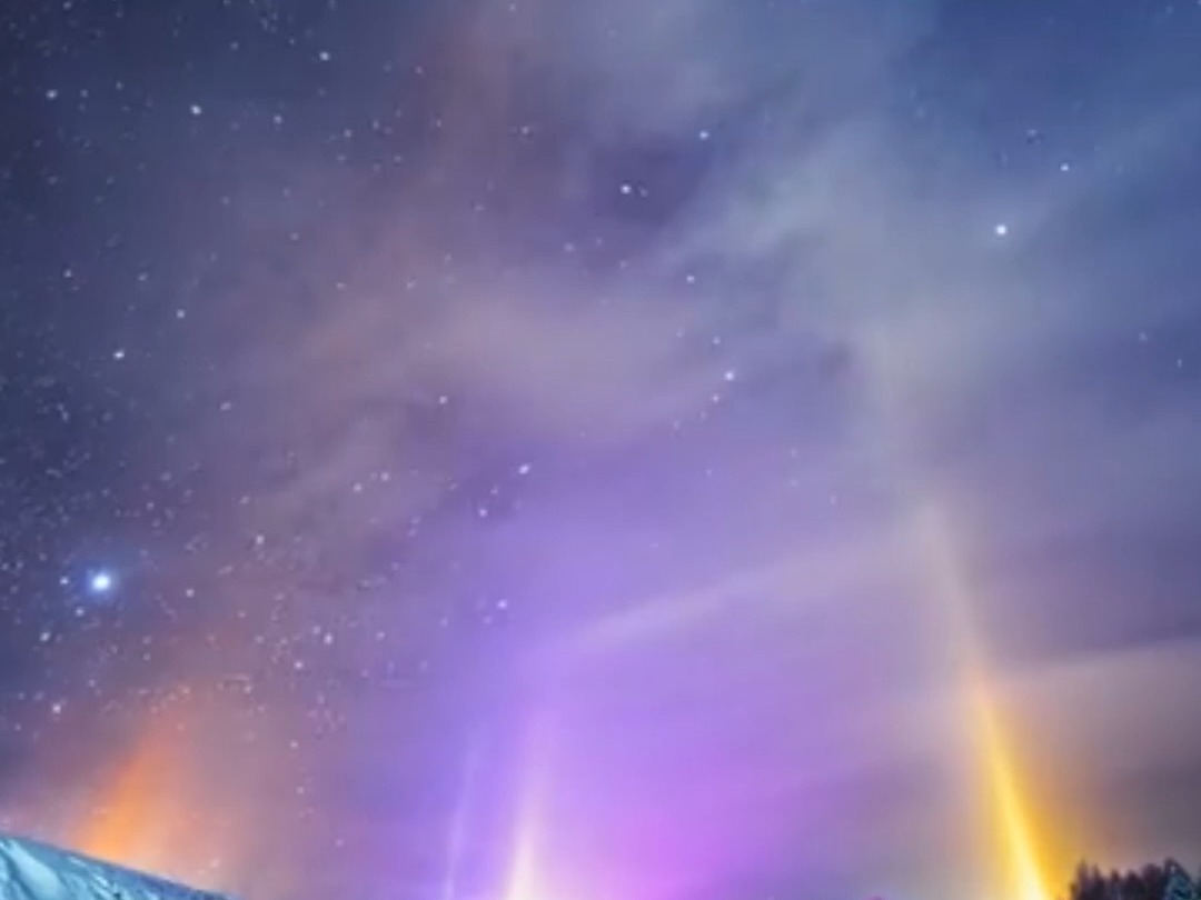 彩色光柱直冲云霄,就好像流浪地球中的行星发动机,美不胜收