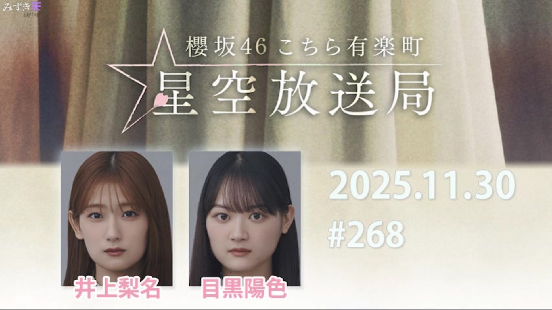 みずき天的视频 2025.11.30 这里是有楽町星空放送局 #268【井上、目黒】 2025.11.30 SAKURAZAKA NO SA 中嶋優月、大沼晶保、幸阪茉里乃 2025.11.27 GOCHAMAZE天国 (武元唯衣) 2025.11.27 菅井友香の#今日も推しとがんばりき 2025.11.23 这里是有楽町星空放送局 #267【井上、森田】 2025.11.23 SAKURAZAKA NO SA 中嶋優月、大沼晶保、幸阪茉里乃 2025.11.20 GOCHAMAZE天国 (武元唯衣) 2025.11.20 菅井友香の#今日も推しとがんばりき 2025.11.19 パンサー向井の#ふらっと(大園玲、山下瞳月) 2025.11.16 这里是有楽町星空放送局 #266【井上、増本】 2025.11.16 SAKURAZAKA NO SA 中嶋優月、遠藤光莉、武元唯衣 2025.11.13 GOCHAMAZE天国 (武元唯衣) 2025.11.13 菅井友香の#今日も推しとがんばりき 2025.11.09 这里是有楽町星空放送局 #265【井上、中川】 2025.11.09 SAKURAZAKA NO SA 中嶋優月、遠藤光莉、武元唯衣 2025.11.06 GOCHAMAZE天国 (武元唯衣) 2025.11.06 菅井友香の#今日も推しとがんばりき 2025.11.02 这里是有楽町星空放送局 #264【井上、石森】 2025.11.02 SAKURAZAKA NO SA 中嶋優月、小田倉麗奈、的野美青 2025.11.01 櫻坂TALKABOUT (大園玲、村井優)