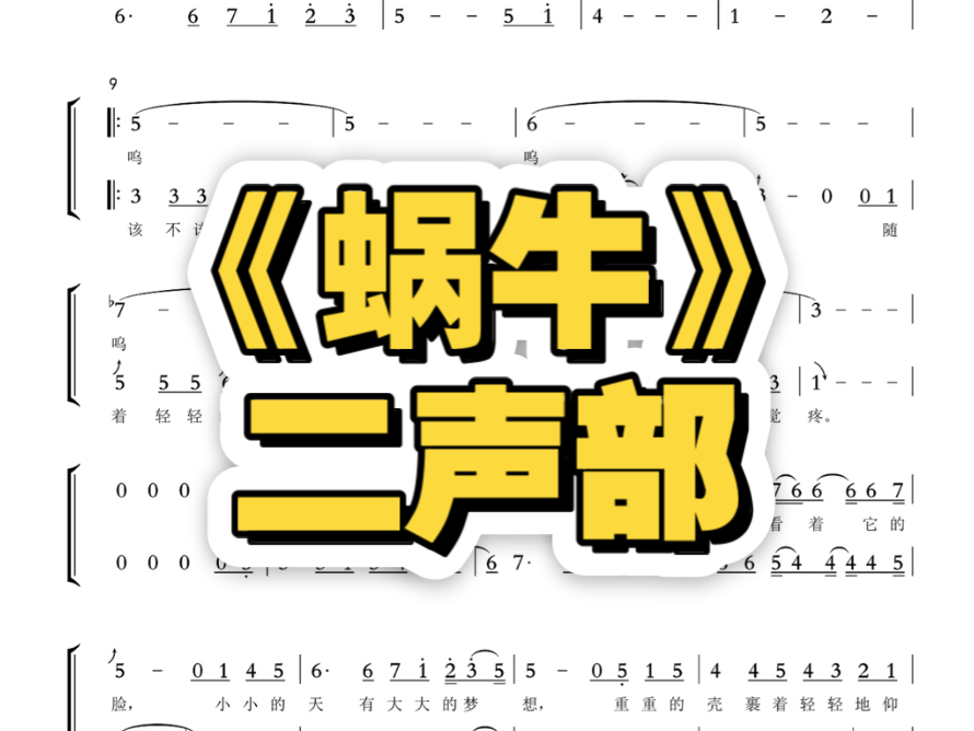 《蜗牛》二声部合唱。高清谱例,伴奏,高低声部人声范唱。需要请丝。#乐谱分享 #童声合唱 #二声部合唱 #简单的合唱