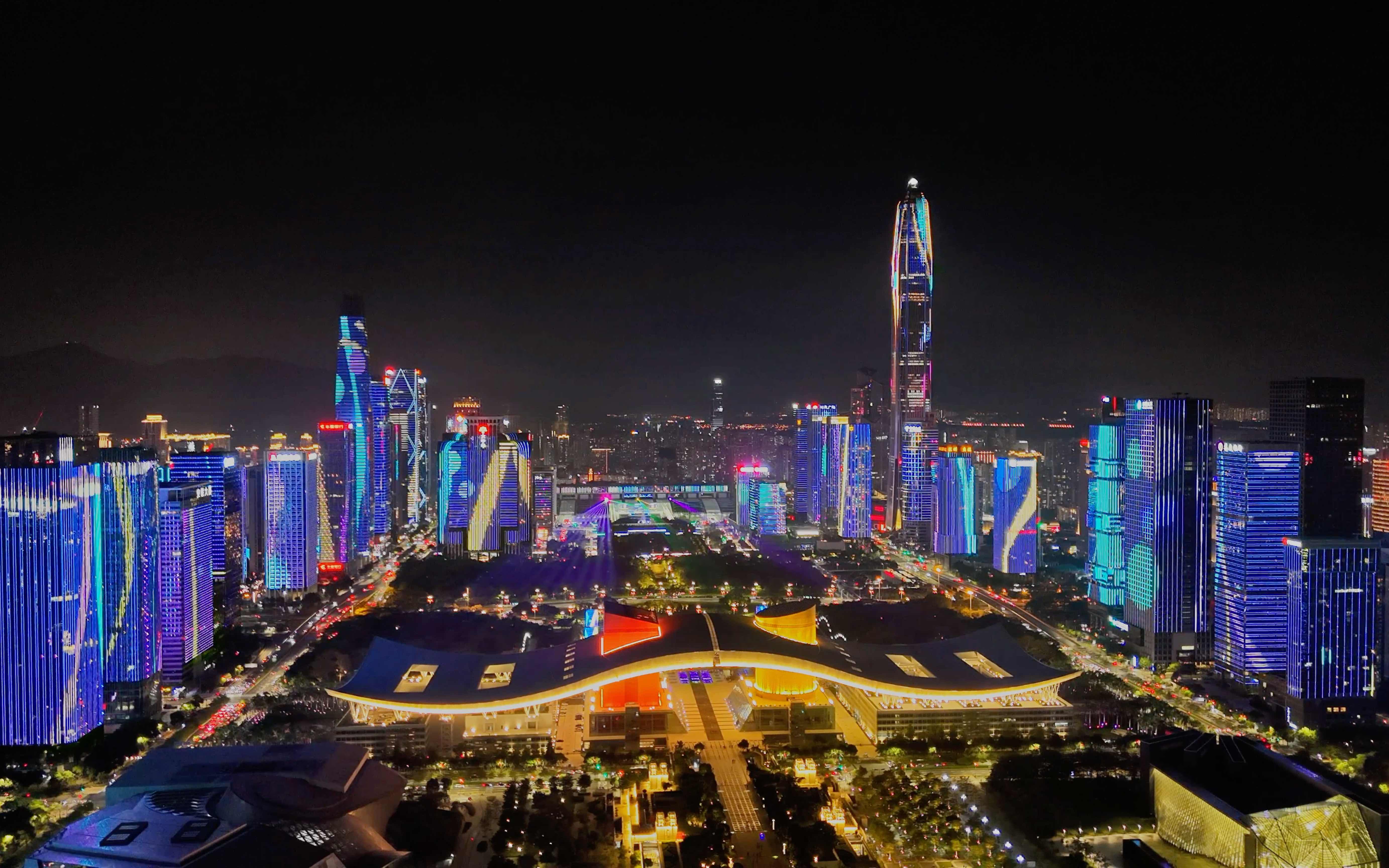 航拍深圳之市民广场灯光秀|中秋国庆双节灯光秀