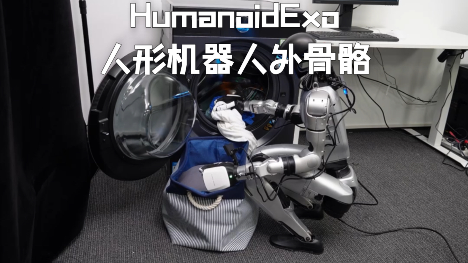 UP主: 封面: 简介:HumanoidExo,用可穿戴外骨骼来进行全身动作采集+全身任务学习。我们不只关注手臂的动作,更把技能扩展到全身manipulation,包括走路、下蹲等动态动作,扩大人形机器人的工...