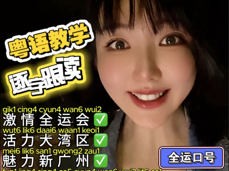 “激情全运会”粤语特色报站,快来逐字学习跟读,用粤语为十五运会打call!学粤语教学广东话广州话全运会口号