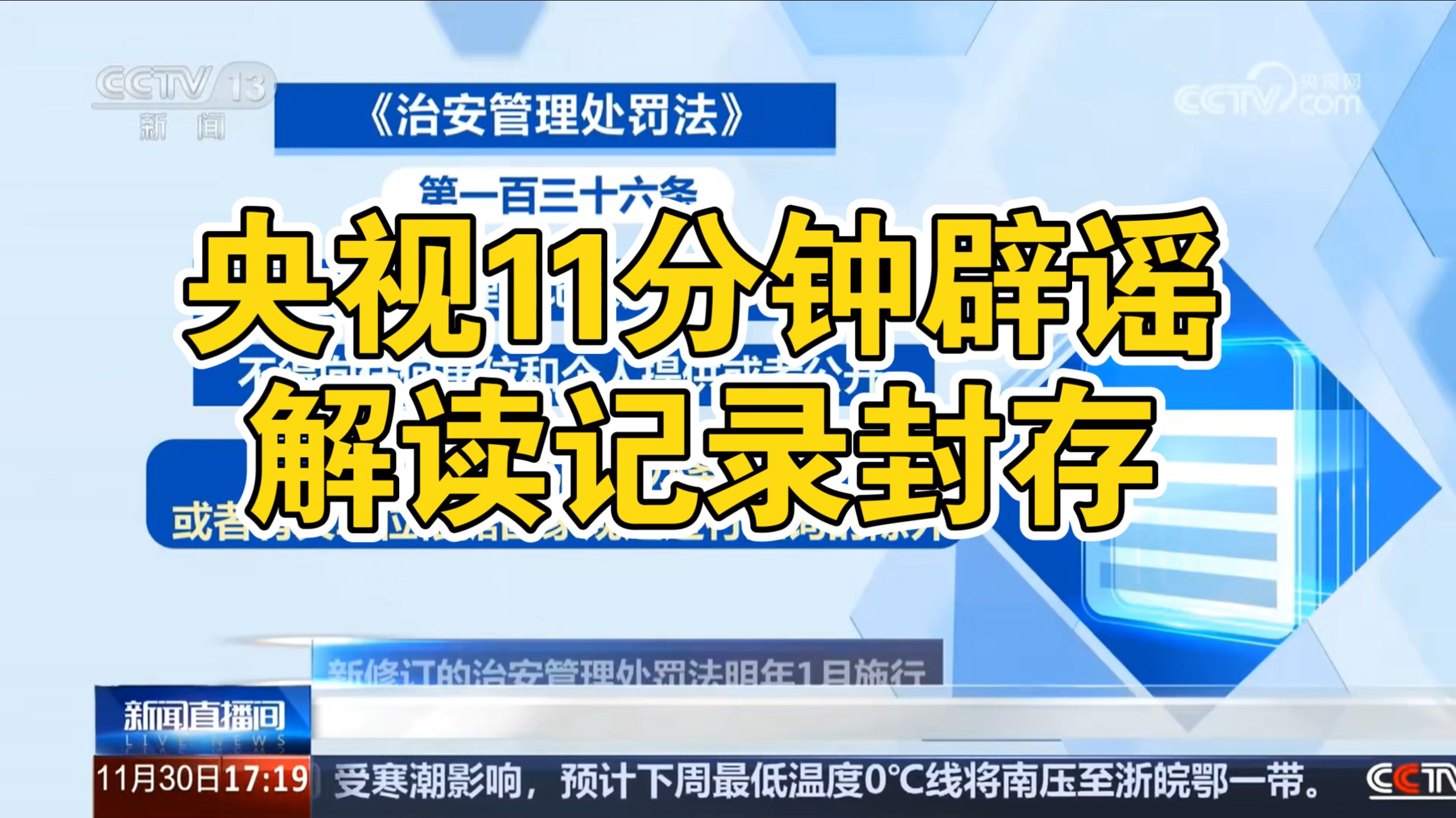 央视11分钟解释封存。如吸毒封存、违法犯罪等治安管理处罚新修订
