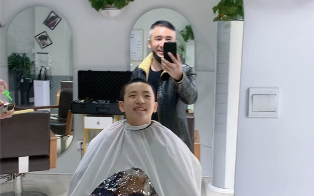 轩爸第一次带轩轩去理发店理头发,理发后的轩轩变成了小帅哥