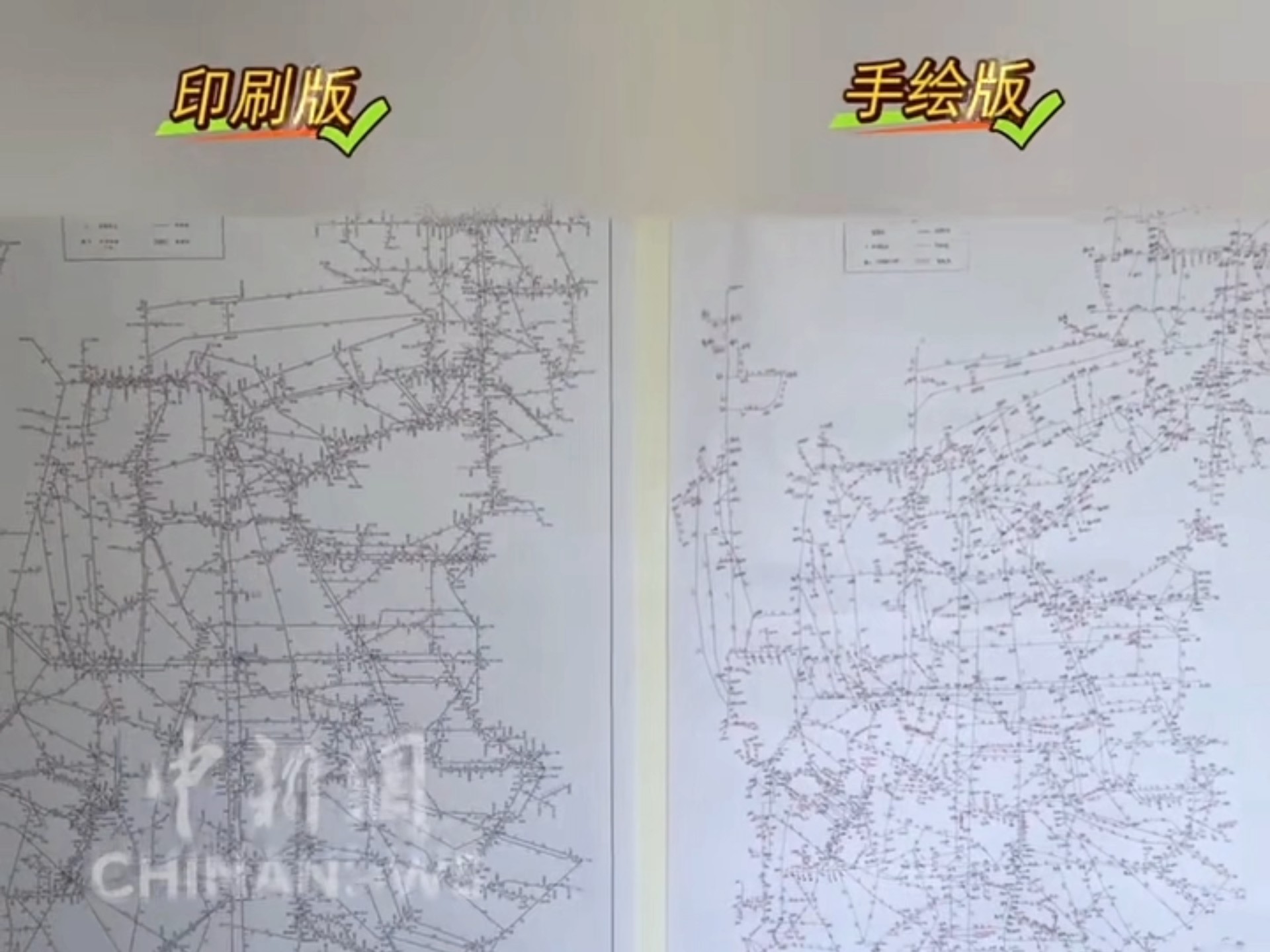 全国铁路示意图有多复杂?95后铁路小姐姐徒手复原。站点熟记于心,被问询时才能脱口而出。(来源:中国新闻网)