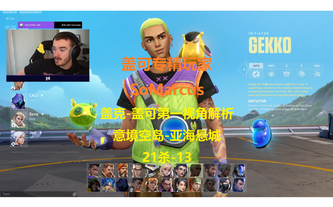 【valorant无畏契约】第一视角解析:盖可专精玩家 SoMarcus 盖可-盖克 意境空岛-亚海悬城 21杀-13