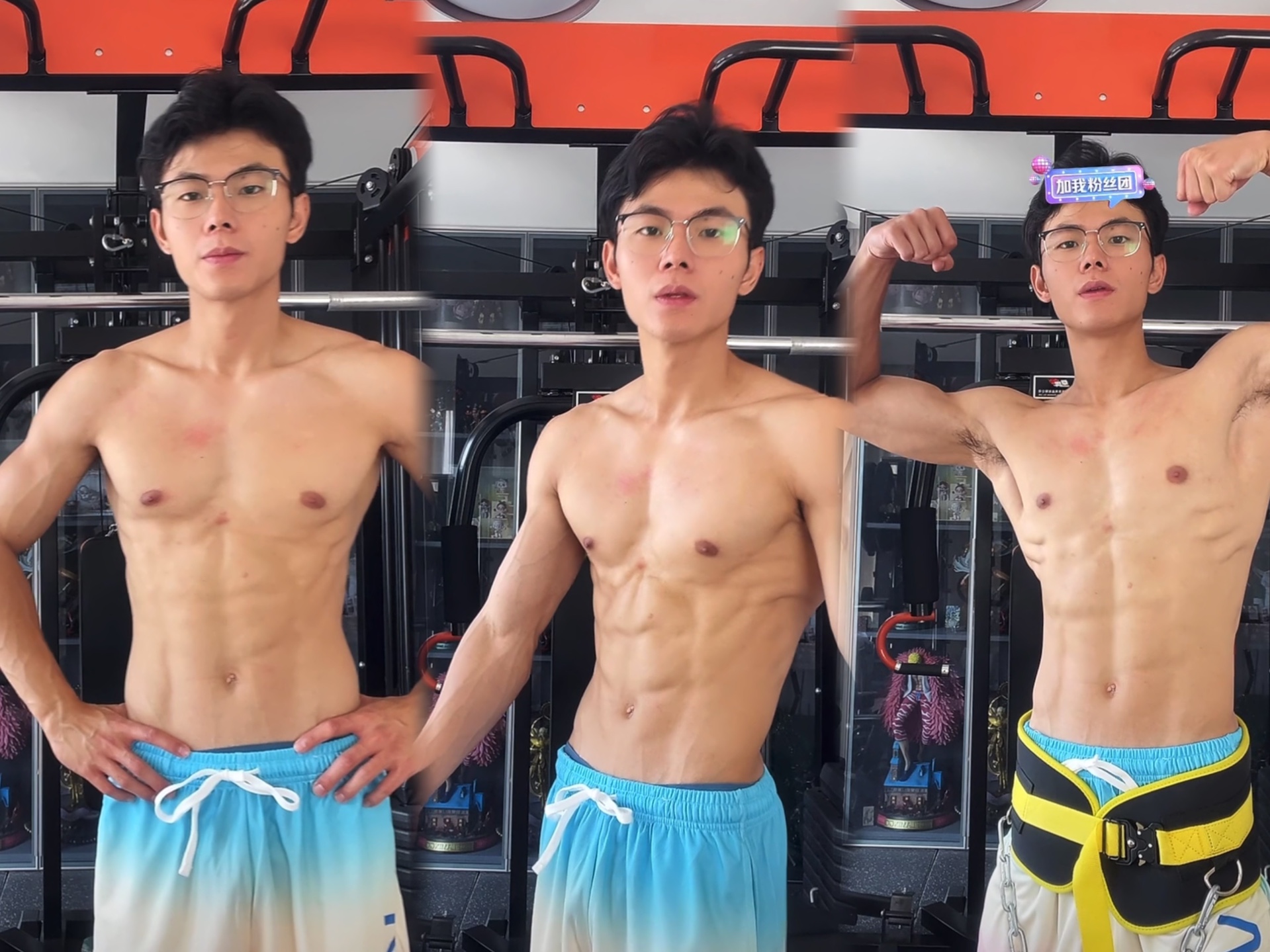 180 腹肌眼镜帅哥淞自律版健身房娱乐健身直播 2024.10.15