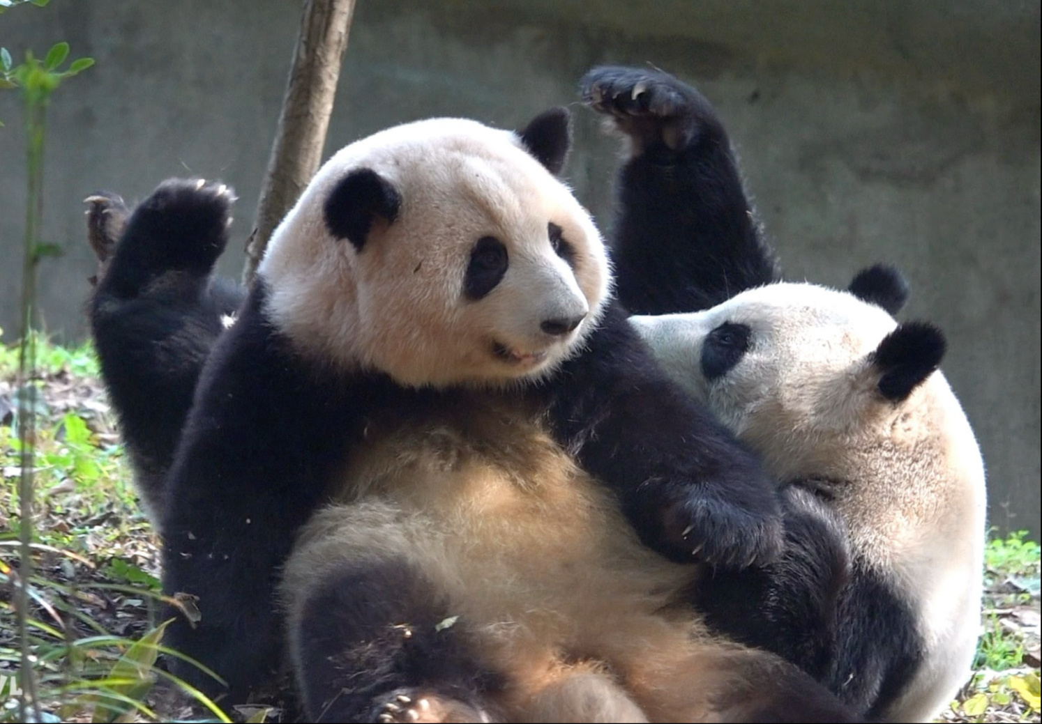 12.2花花和叶一起翻滚!花花一脚踩空掉木架上生了好大的气😂大家不许笑哈!