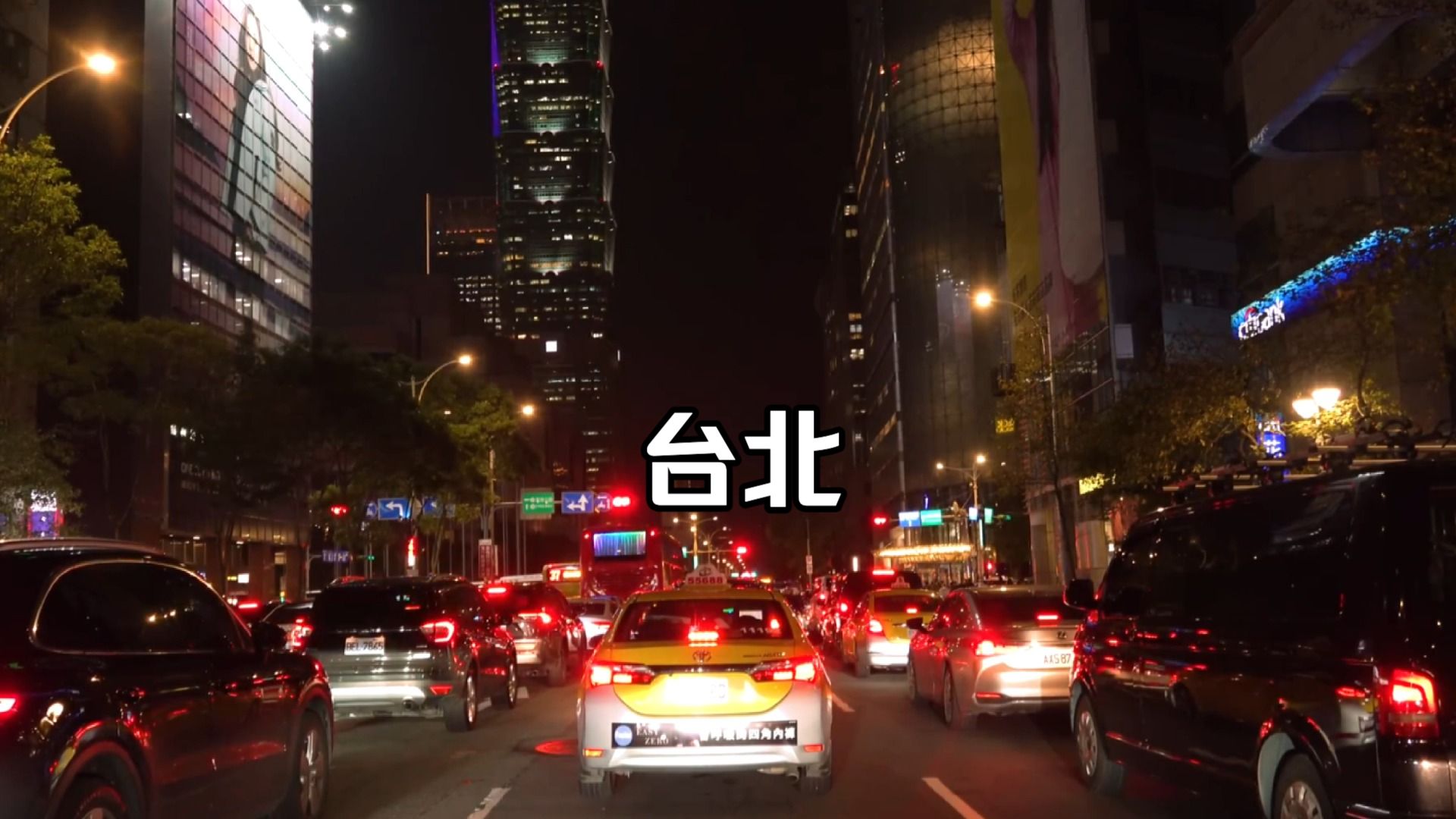 台湾台北夜间驾车行驶城市街景夜景4K