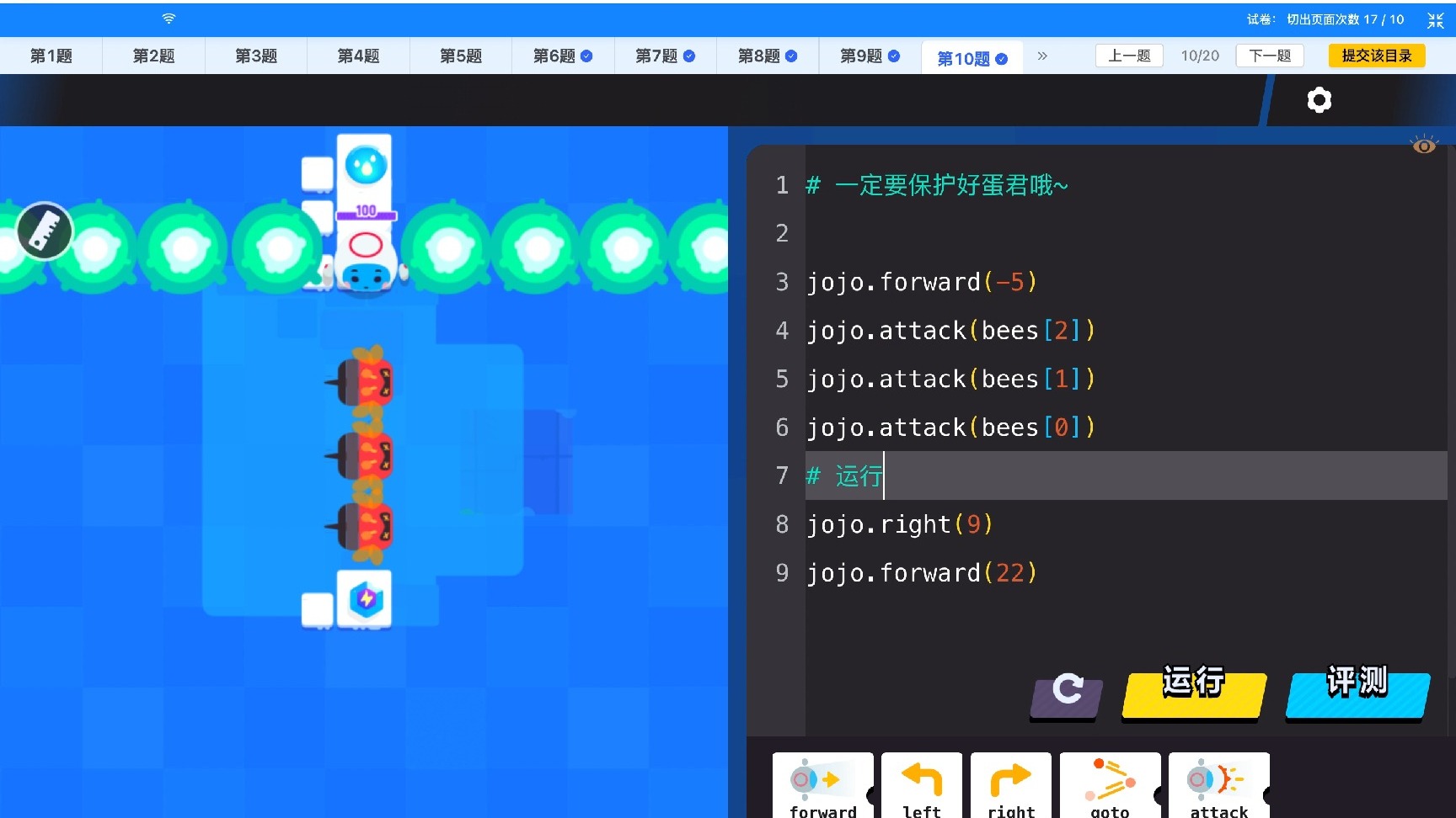 编程闯关竞技赛 小高 平台练习 第九题和第十题
