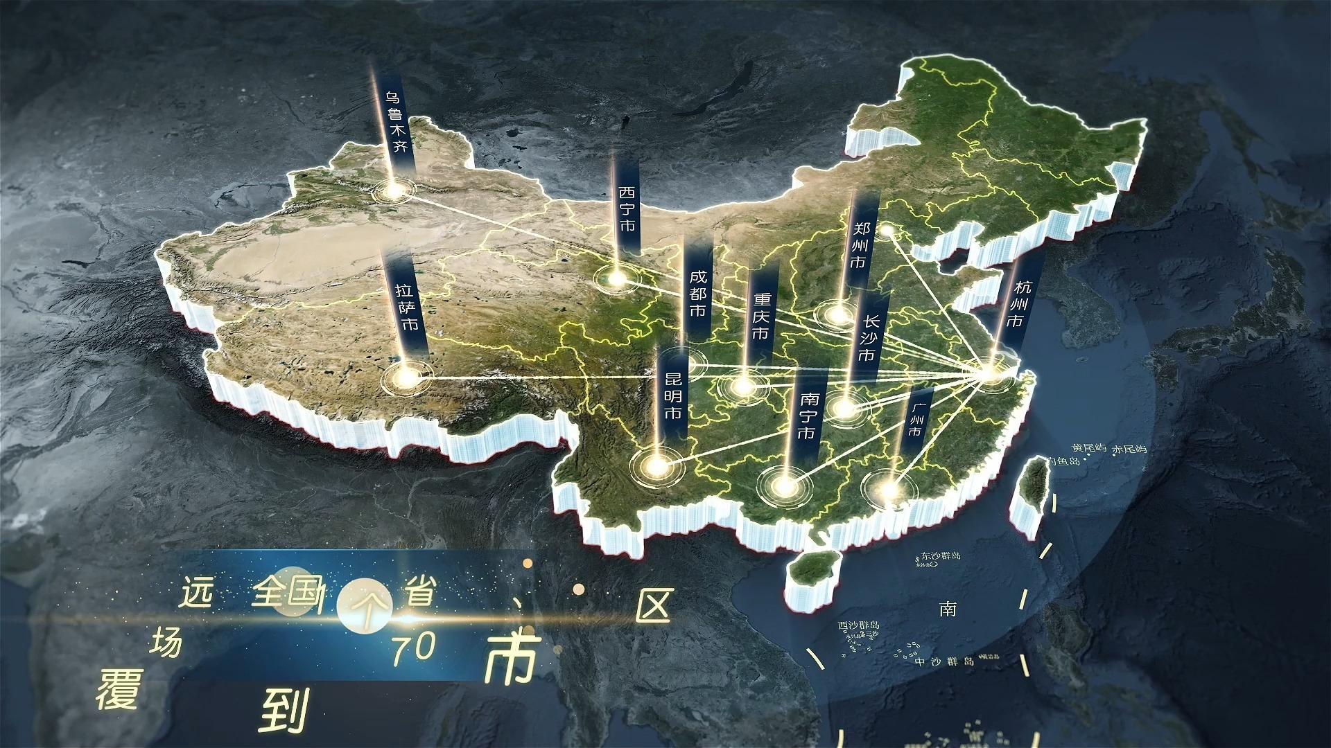原创AE模板,需P粒子、of灯光插件,摄像机角度地图颜色,文字内容都可以修改。