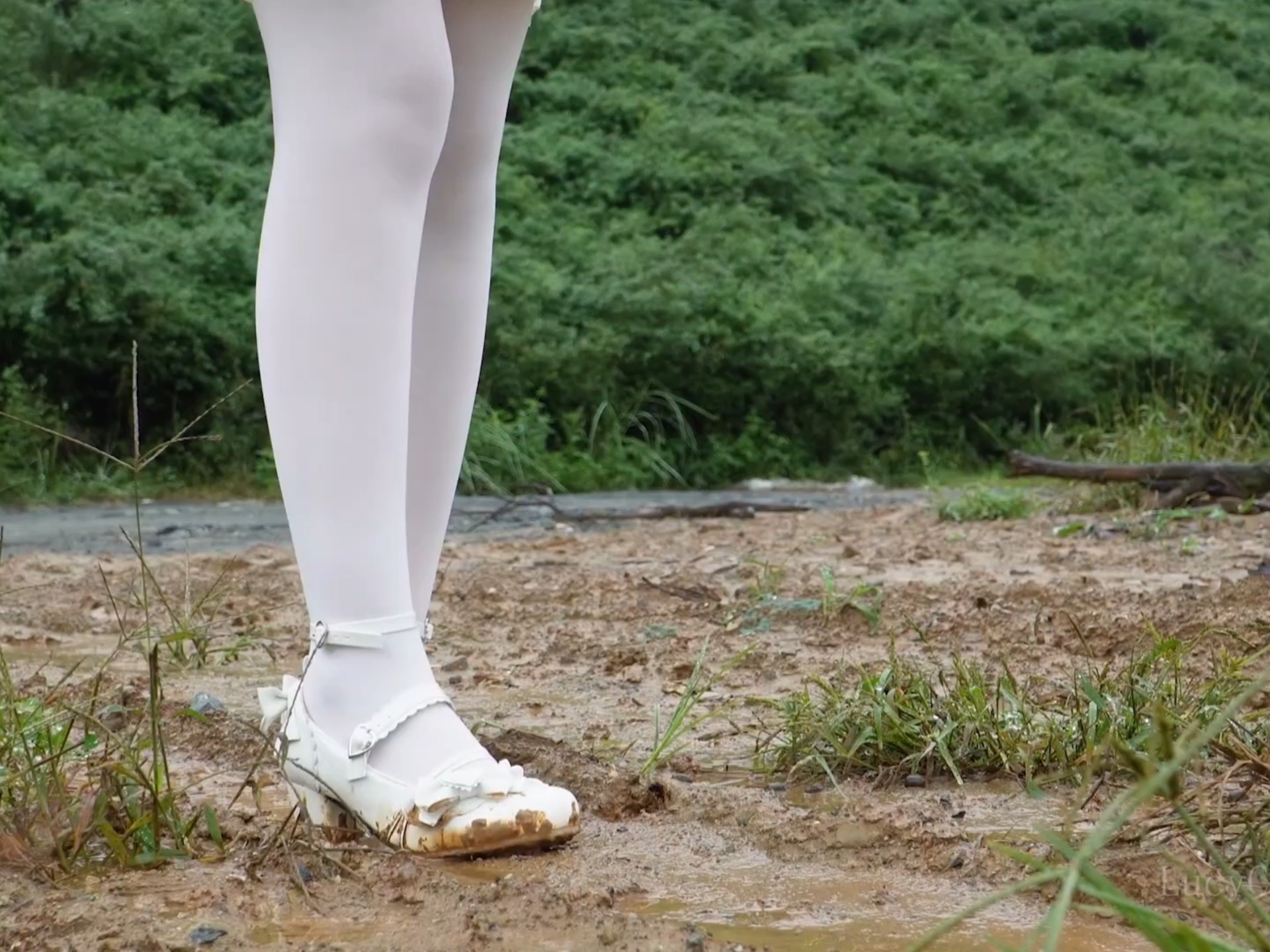 穿着蛋糕裙和白色lo鞋去泥地探险