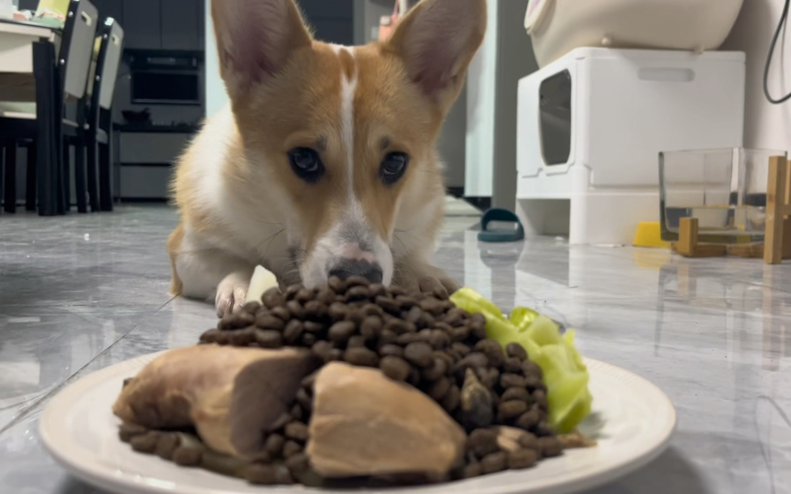 下次换个盘子 狗粮到处跑