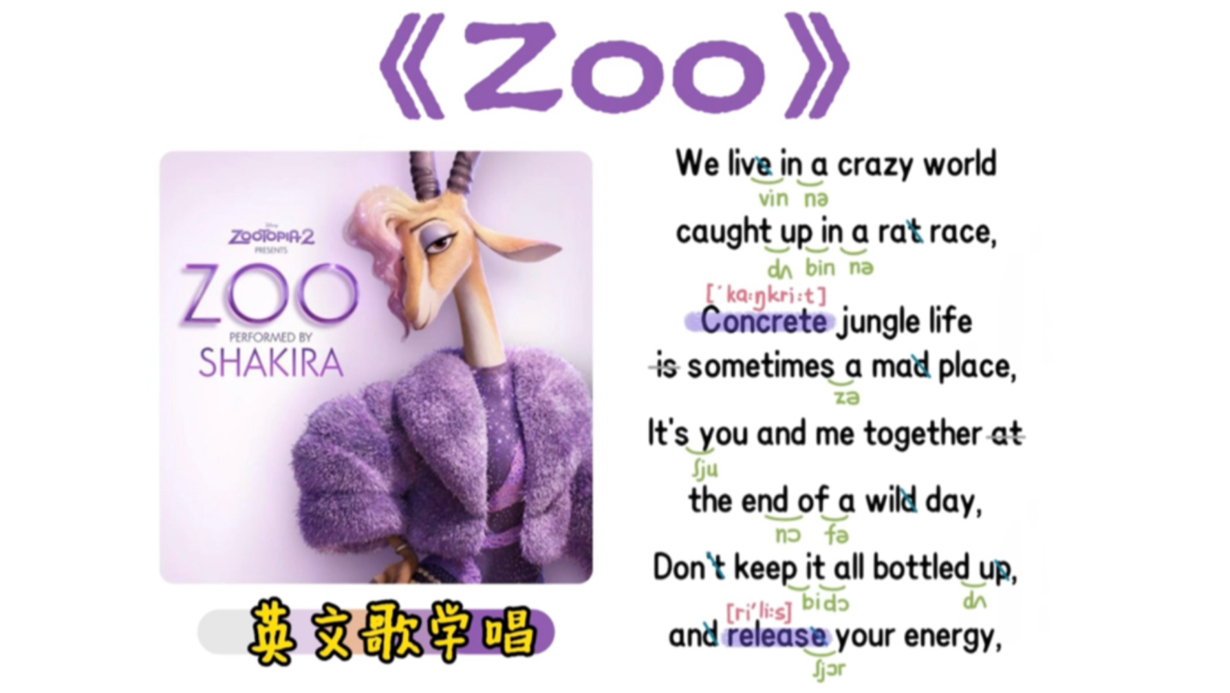 亲爱的阿夏的视频 英文歌学唱|《疯狂动物城2》主题曲《ZOO》|超细致标注|O 199——《Try everything》(【疯狂动物城】主题曲)|英文歌学唱|保姆级|连读弱读音标|X 046——经典小清新歌曲《Lemon tree》|英文歌学唱|保姆级|连读弱读音标|X 010——《You are my sunshine》|英文歌学唱|保姆级|连读弱读音标|X 078——《Monsters》|英文歌学唱|保姆级|连读弱读音标|X 090——《You are beautiful》|英文歌学唱|保姆级|连读弱读音标|X 095——《See you again》|英文歌学唱|保姆级|连读弱读音标|X 013——《You raise me up》|英文歌学唱|保姆级|连读弱读音标|X 009——《Yesterday once more》|英文歌学唱|保姆级|连读弱读音标|X 014——《Big Big World》|英文歌学唱|保姆级|连读弱读音标|X 036——《Take me to your heart》(英文版《吻别》)|英文歌学唱|保姆级|连读弱读音标|X 076——《Something just like this》|英文歌学唱|保姆级|连读弱读音标|X 047——戳心金曲《Five hundred miles》|英文歌学唱|保姆级|连读弱读音标|X 004——《Peter Pan was right》|英文歌学唱|保姆级|连读弱读音标|X 079——超燃经典《Believer》|英文歌学唱|保姆级|连读弱读音标|X 291——《Listen》|英文歌学唱|保姆级|连读弱读音标|O 294——《Try》|英文歌学唱|保姆级|连读弱读音标|O 310——《Proud of you》(英文版《挥着翅膀的女孩》)|英文歌学唱|保姆级|连读弱读音标|X 053——《Waving flag》|英文歌学唱|保姆级|连读弱读音标|X 158——《Wake》自律神曲,超燃励志|英文歌学唱|保姆级|连读弱读音标|X