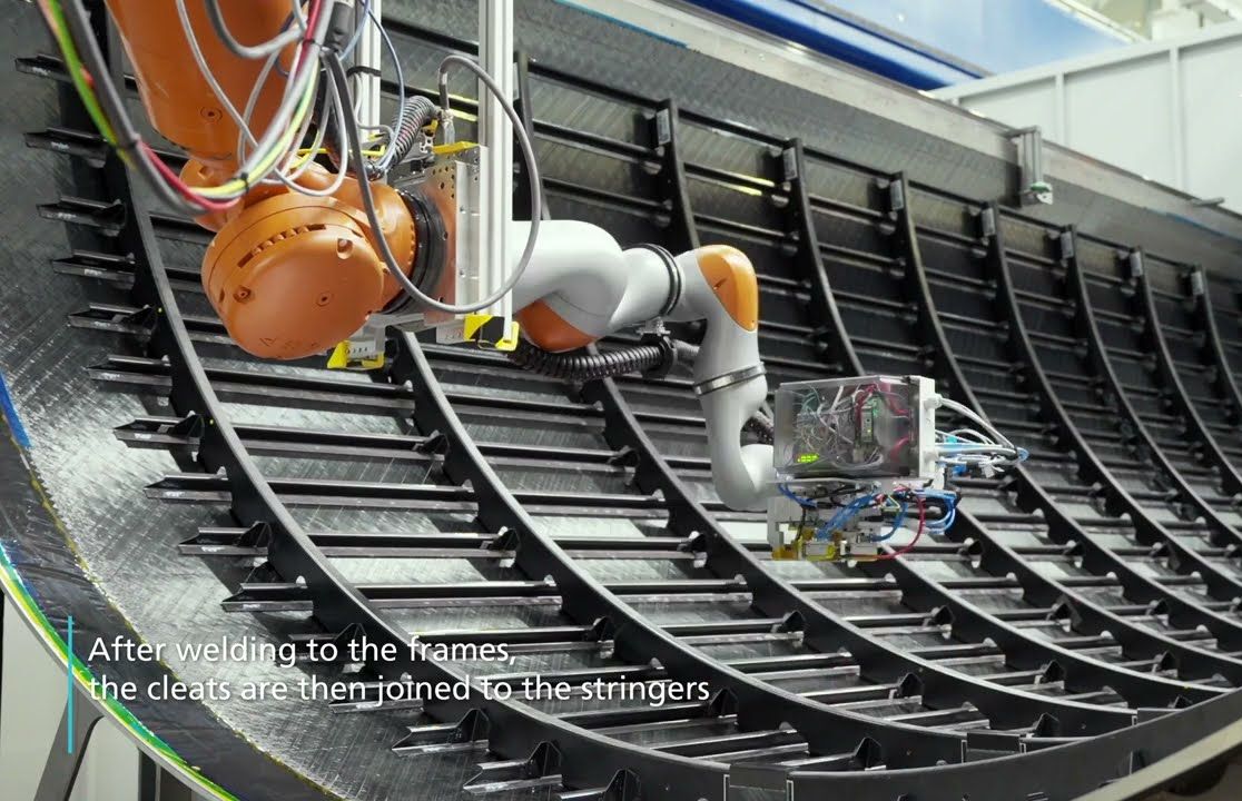 UP主: 封面: 简介:https://www.youtube.com/全热塑性#MFFD上壳的制造和组装过程的总结:-现场固结铺层蒙皮(总共放置53公里胶带)-由Aernnova公司生产44条压缩成型z型弦-基于机器人的超声波点...