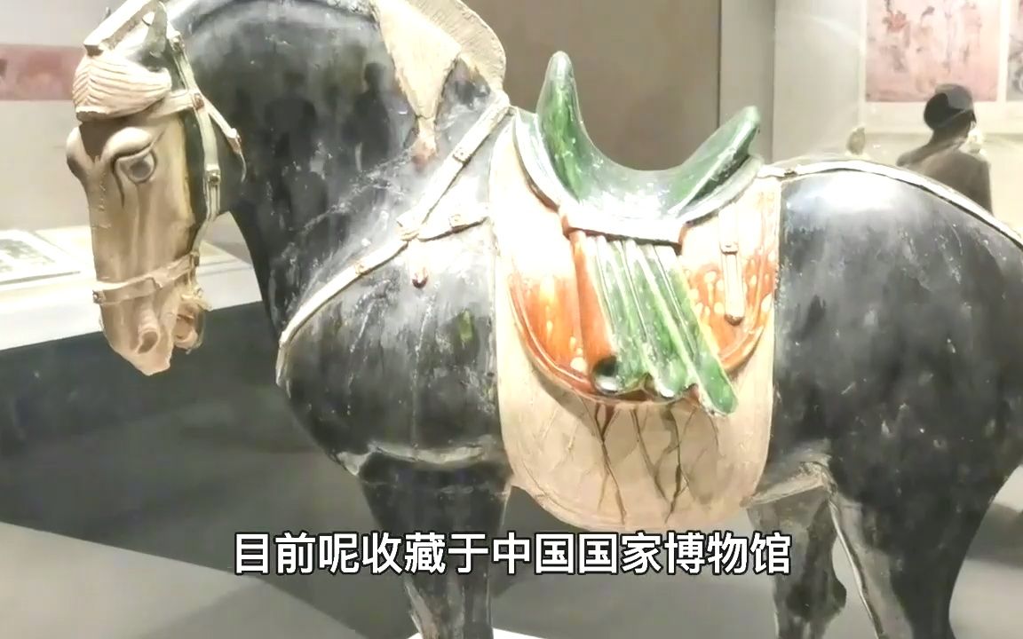 中国国家博物馆三彩黑釉陶马,河南洛阳关林出土,唐三彩中的精品