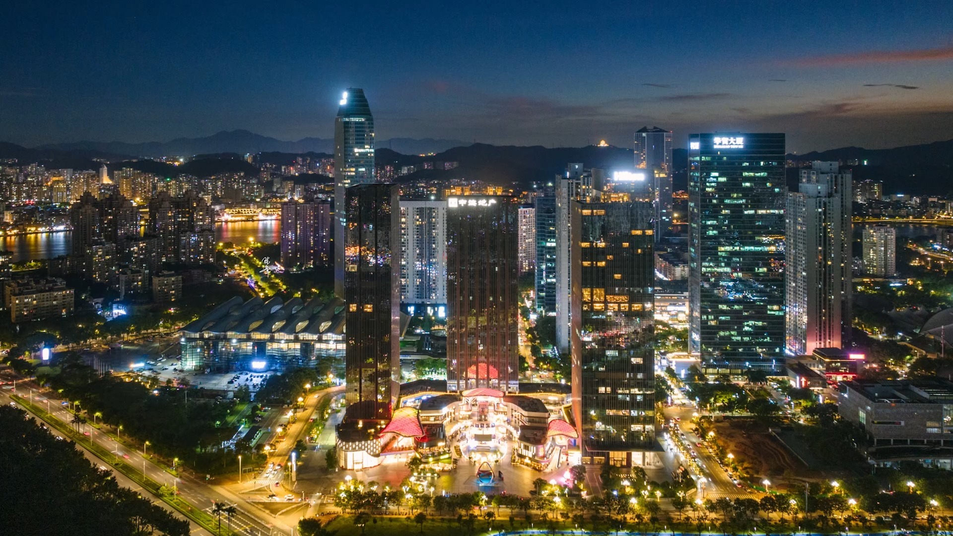 中国二线城市惠州江北商圈航拍夜景